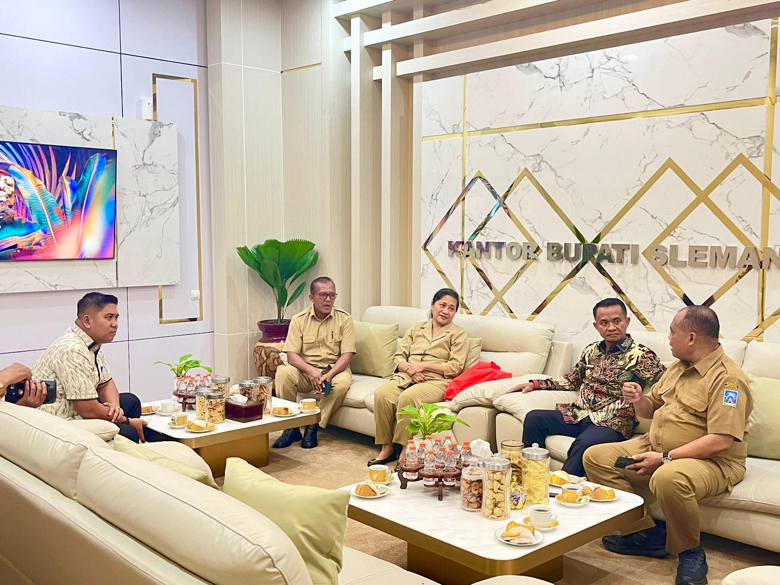 Kunjungan Bupati Bone beserta rombongan diterima langsung oleh Bupati Sleman H. Harda Kiswaya, S.E., M.Si., di Ruang Kerjanya Kantor Bupati Sleman, Jl. Parasamya, Beran Lor, Tridadi, Kec. Sleman, Kab. Sleman, DIY, Senin, 5 Mei 2025.