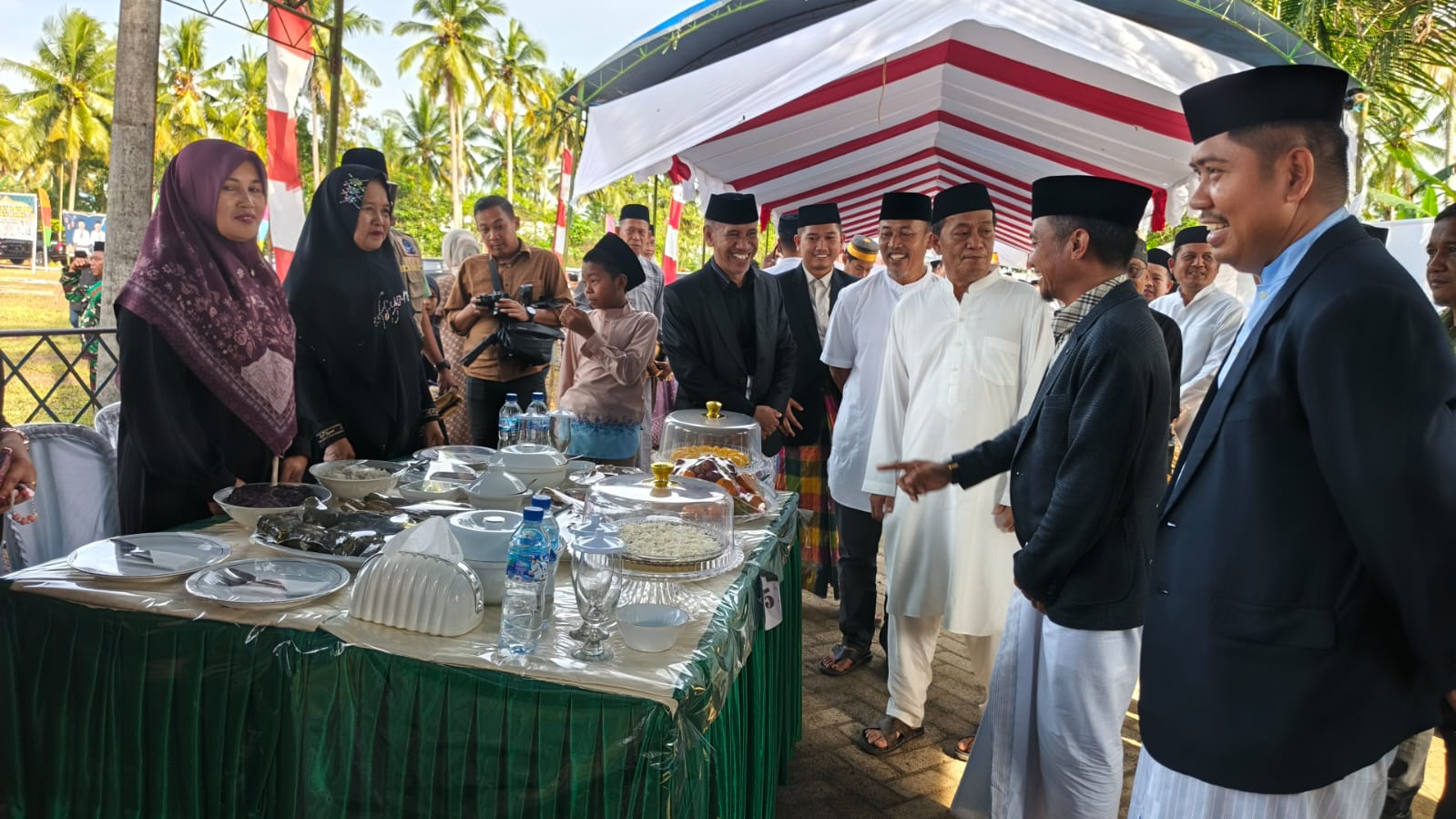 Setelah melaksanakan Salat Idul Adha, Bupati Bone dan Ketua TP PKK Bone mengunjungi stand lomba menu lebaran dari 9 desa se-Kecamatan Bengo. Bupati Bone didampingi oleh Camat Bengo, Edy Saputra Syam, S.STP., M.Si., Kepala Perangkat Daerah Bone, serta tamu undangan lainnya.