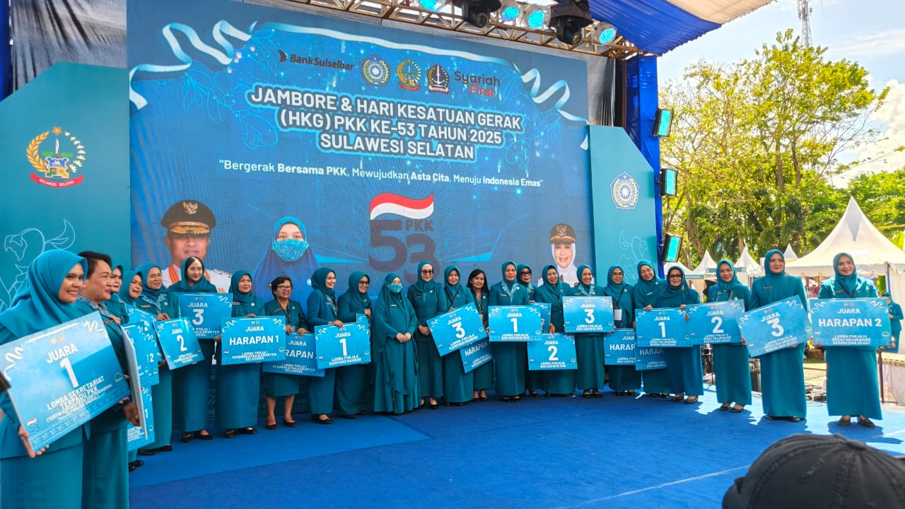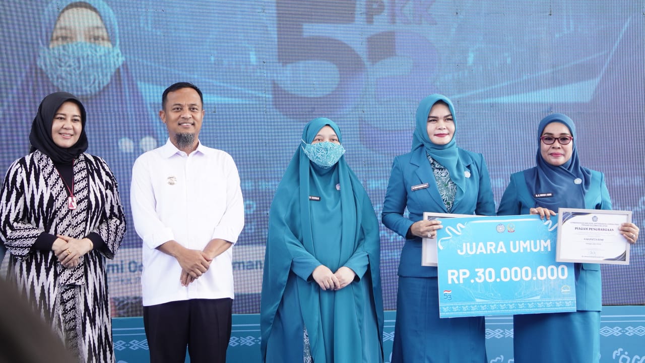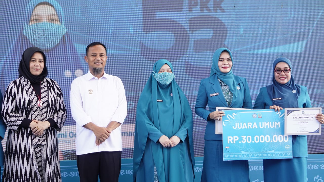 Kabupaten Bone keluar sebagai juara umum pelaksanaan jambore dan kabupaten selayar juara umum lomba SMEP (Supervisi, Monitoring, evaluasi dan pelaporan) 10 program pokok PKK.(wf)