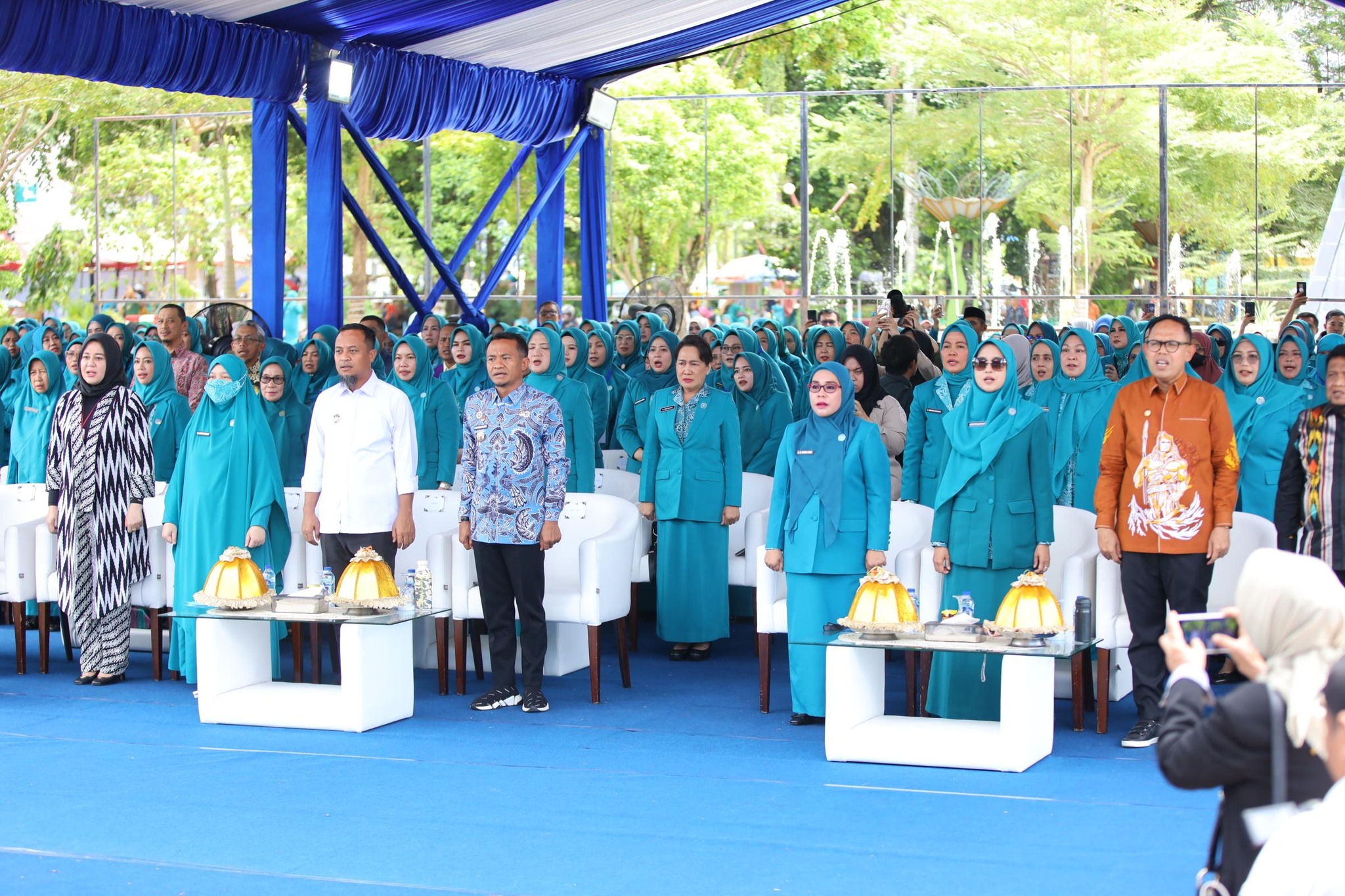 Hadir Bupati Bone H. Andi Asman Sulaiman, S. Sos., MM. Didampingi Ketua TP PKK Bone Hj. Maryam A. Asman. Bersama Wakil Bupati Bone Dr. H. Andi Akmal Pasluddin, SP., MM didampingi Wakil Ketua TP PKK Bone Hj. Maya Damayanti A. Akmal Serta Ketua TP PKK Kab/Kota Se-Sulawesi Selatan.