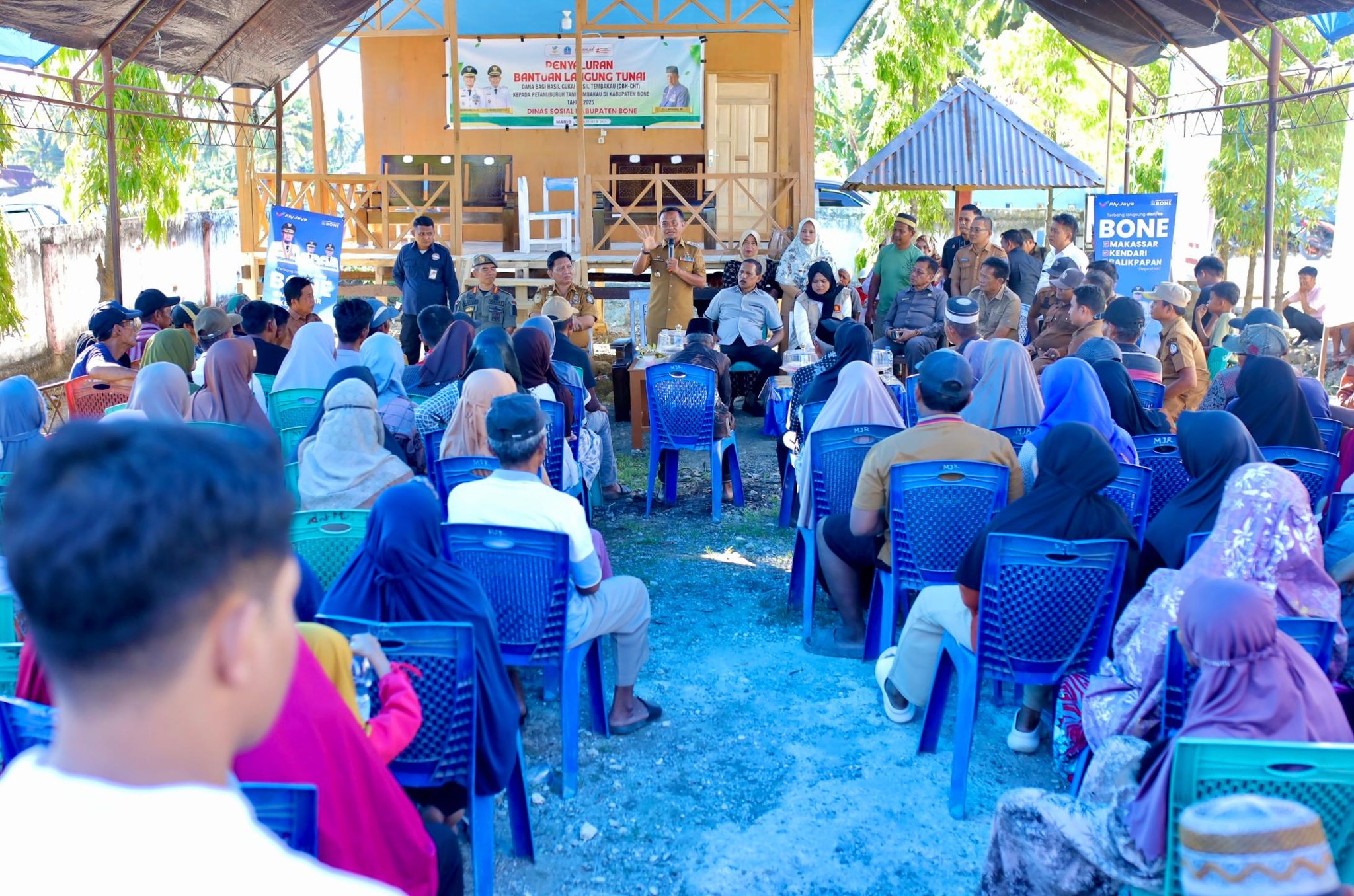 HumasBone – Bupati Bone, H. Andi Asman Sulaiman, menyalurkan Bantuan Langsung Tunai (BLT) Dana Bagi Hasil Cukai Hasil Tembakau (DBHCHT) kepada para petani dan buruh tani tembakau di Kabupaten Bone tahun 2025. Penyaluran bantuan tersebut dilaksanakan di dua kecamatan, yakni Kecamatan Tellu Siattinge dan Kecamatan Amali, yang dipusatkan di Kompleks Lapangan Sepak Bola Desa Pongka, Kecamatan Tellu Siattinge, pada Senin, 13 Oktober 2025.