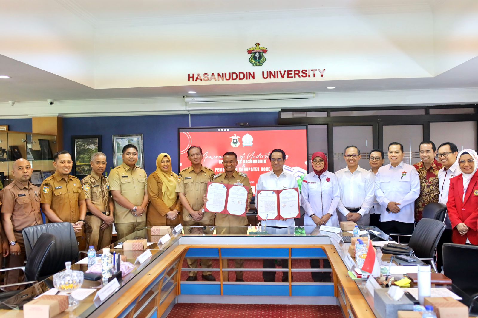 HumasBone – Pemerintah Kabupaten Bone dan Universitas Hasanuddin (Unhas) Makassar resmi menjalin kerja sama melalui penandatanganan Nota Kesepahaman (MoU) untuk pembangunan kampus Unhas di Bone. Penandatanganan ini berlangsung di Ruang Rapat Rektor, Lantai 8 Gedung Rektorat Unhas, Tamalanrea, Makassar, pada Senin (20/10/2025).