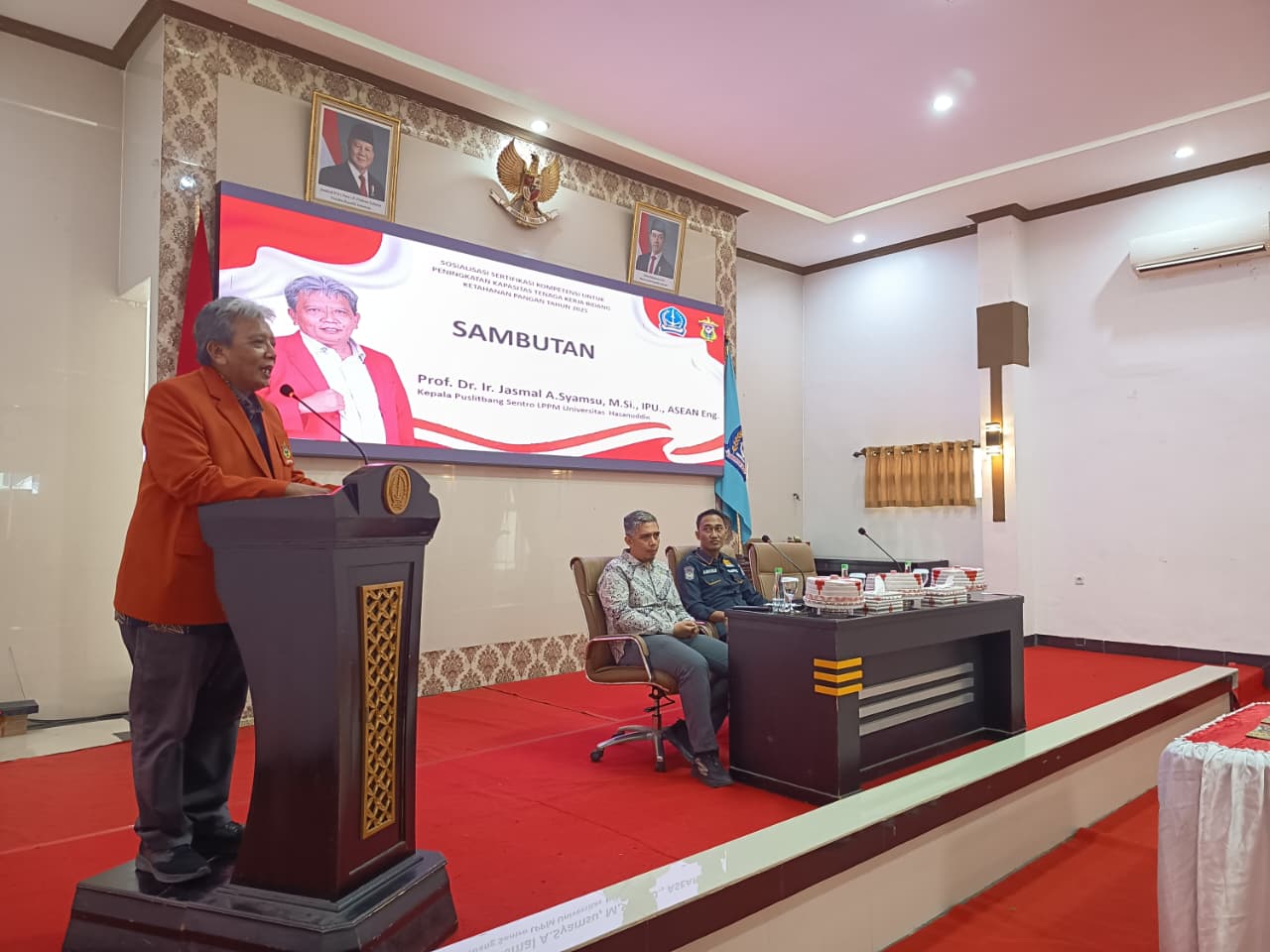 Dalam Kegiatan ini hadir Prof. Dr. Ir. Jasmal A.Syamsu, M.Si., IPU., ASEAN Eng. Kepala Puslitbang Sentro LPPM Universitas  Hasanuddin, bersama Prof. Dr. Ir. Sri Purwanti, S.Pt., M.Si., IPU., ASEAN. Eng. Manajer Skema LSP Unhas (2023-Sekarang) yang juga selaku pemateri dalam kegiatan ini.