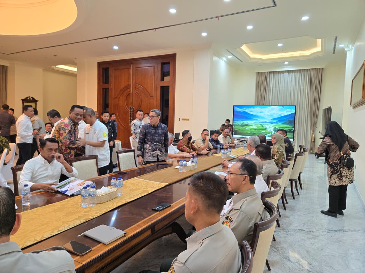 Pertemuan tersebut juga dihadiri oleh Gubernur Sulawesi Selatan, H. Andi Sudirman Sulaiman, S.T., bersama sejumlah kepala daerah lainnya, antara lain Wali Kota Parepare, serta para Bupati dari Barru, Takalar, Jeneponto, Selayar, Pinrang, Sidrap, Soppeng, Enrekang, Tana Toraja, Toraja Utara, Gowa, dan Luwu.