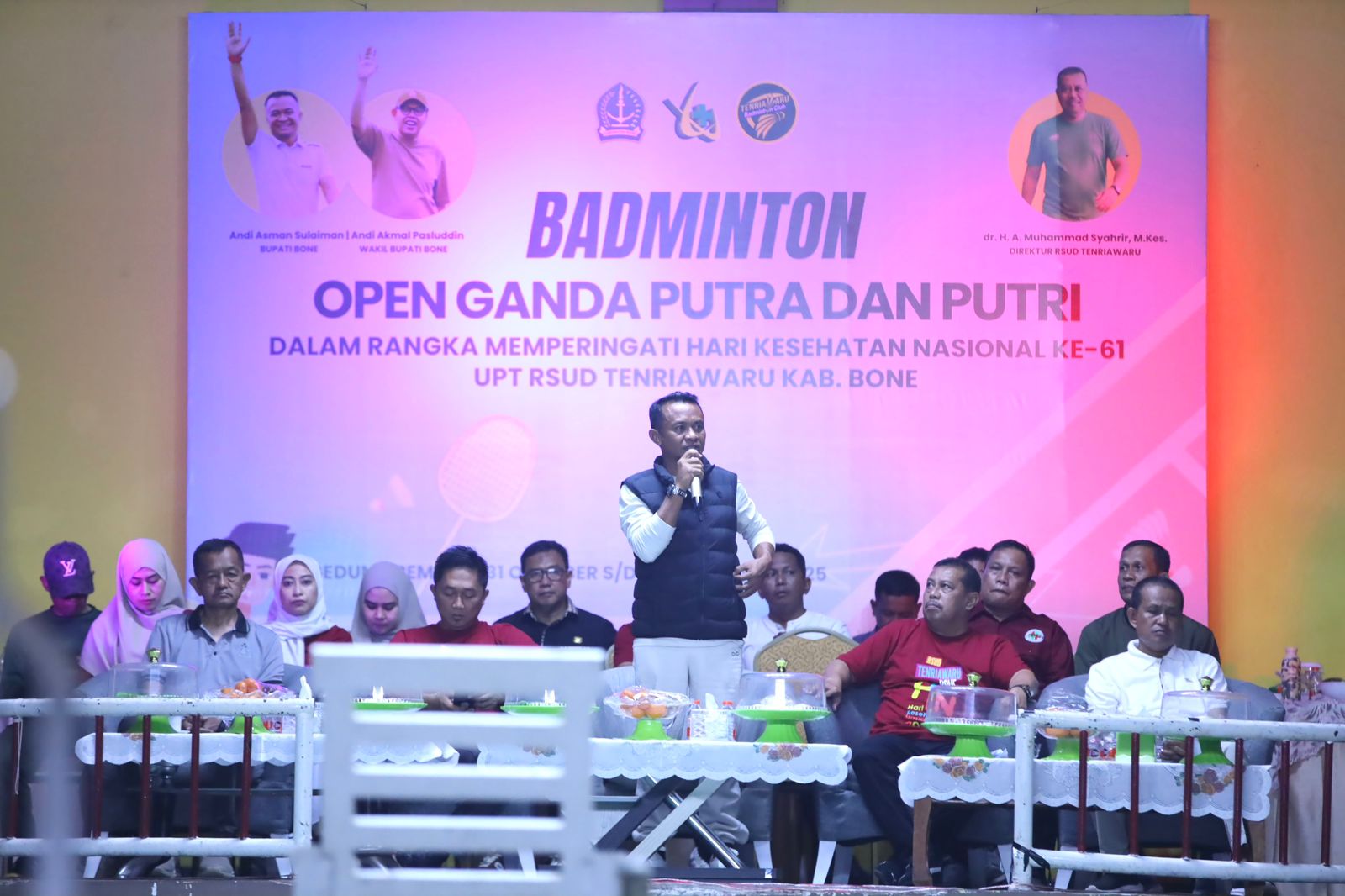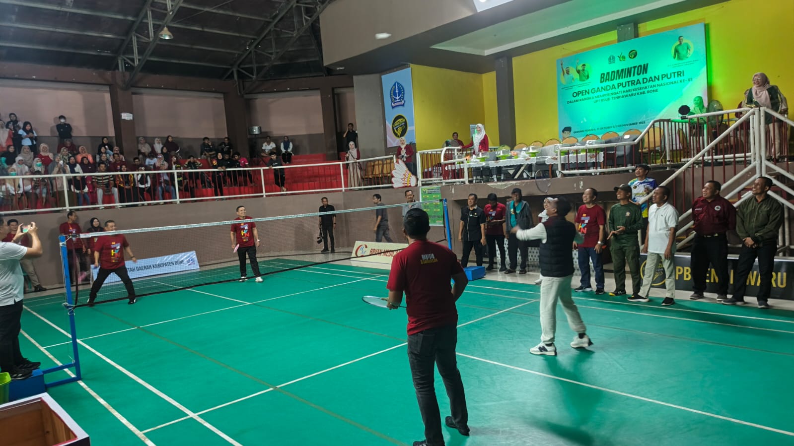 HumasBone — Bupati Bone, H. Andi Asman Sulaiman, S.Sos., M.M., didampingi Pj Sekda Andi Saharuddin, S. STP., M.Si dan Direktur Rsud Tenriawaru Dr. H. Muh. Syahrir, M. Kes, secara resmi membuka Turnamen Badminton Open Ganda Putra dan Putri dalam rangka memperingati Hari Kesehatan Nasional (HKN) ke-61 yang digelar oleh UPT RSUD Tenriawaru Kabupaten Bone.