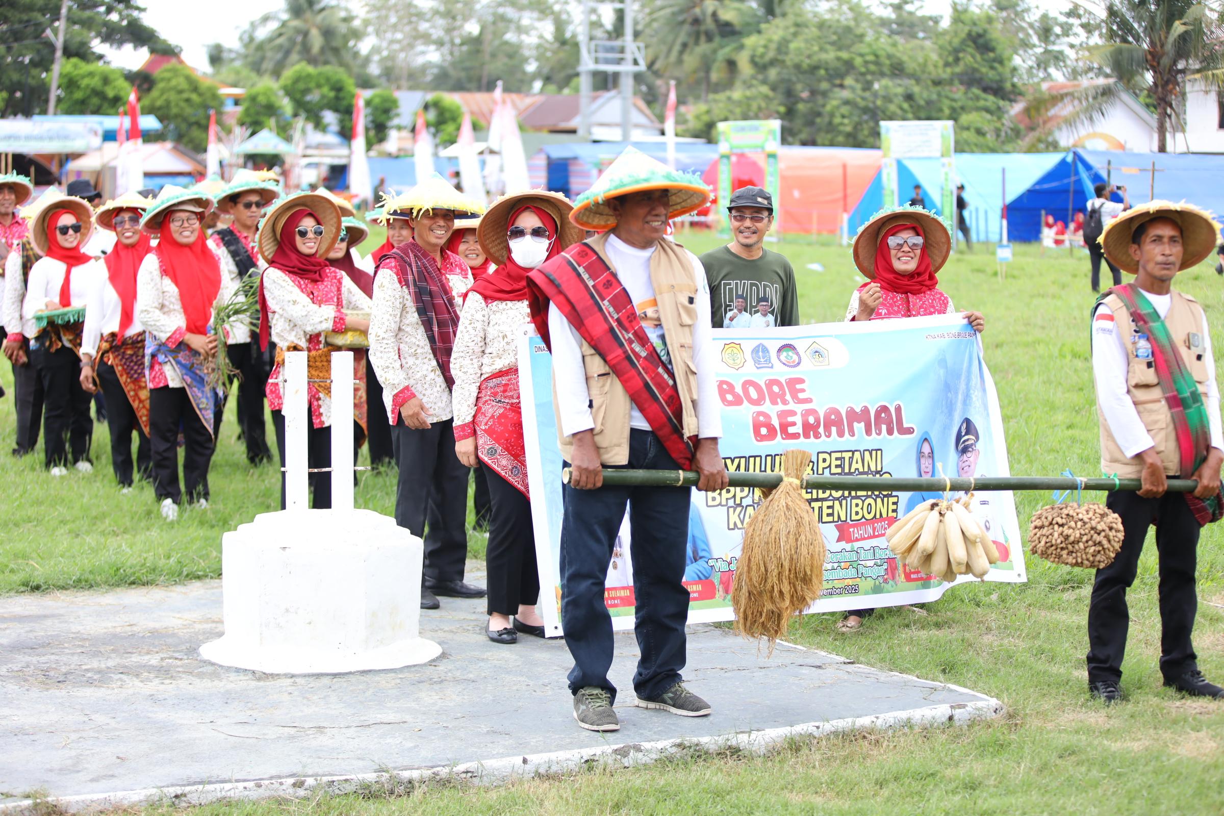 HumasBone — Bupati Bone, H. Andi Asman Sulaiman, S.Sos., M.M., didampingi Ketua TP PKK Kabupaten Bone, Hj. Maryam A. Asman, serta Wakil Bupati Bone, Dr. H. Andi Akmal Pasluddin, S.P., M.M., secara resmi membuka Jambore BerAmal Petani dan Penyuluh Pertanian Tahun 2025 yang digelar di Kecamatan Amali, Sabtu (1/11/2025).