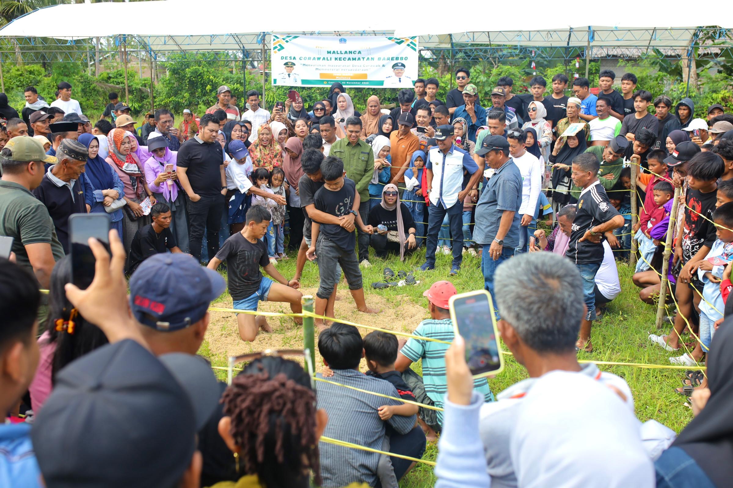 HumasBone — Bupati Bone, H. Andi Asman Sulaiman, S.Sos., M.M., menghadiri Pesta Rakyat Mallanca yang digelar di Desa Corawali, Kecamatan Barebbo, Ahad (2/11/2025).