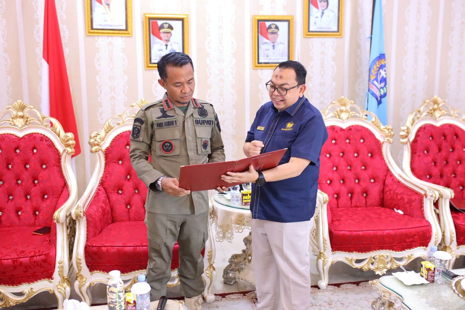 HumasBone – Bupati Bone H. Andi Asman Sulaiman, S.Sos., M.M. bersama Wakil Bupati Bone Dr. H. Andi Akmal Pasluddin, S.P., M.M. menerima kunjungan Kepala Kantor Pelayanan Pajak (KPP) Pratama Watampone, Dr. Amran, S.E., Ak., M.Pa.