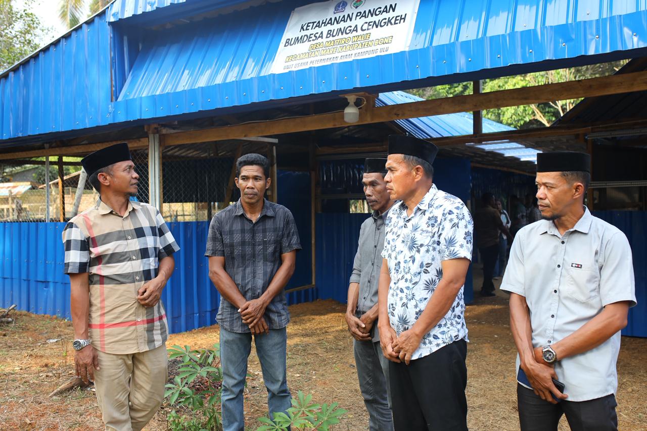 Usai meninjau pembangunan drainase, Bupati Bone melanjutkan kunjungan ke kandang percontohan ayam KUB yang dikelola oleh BUMDes Mattirowalie.