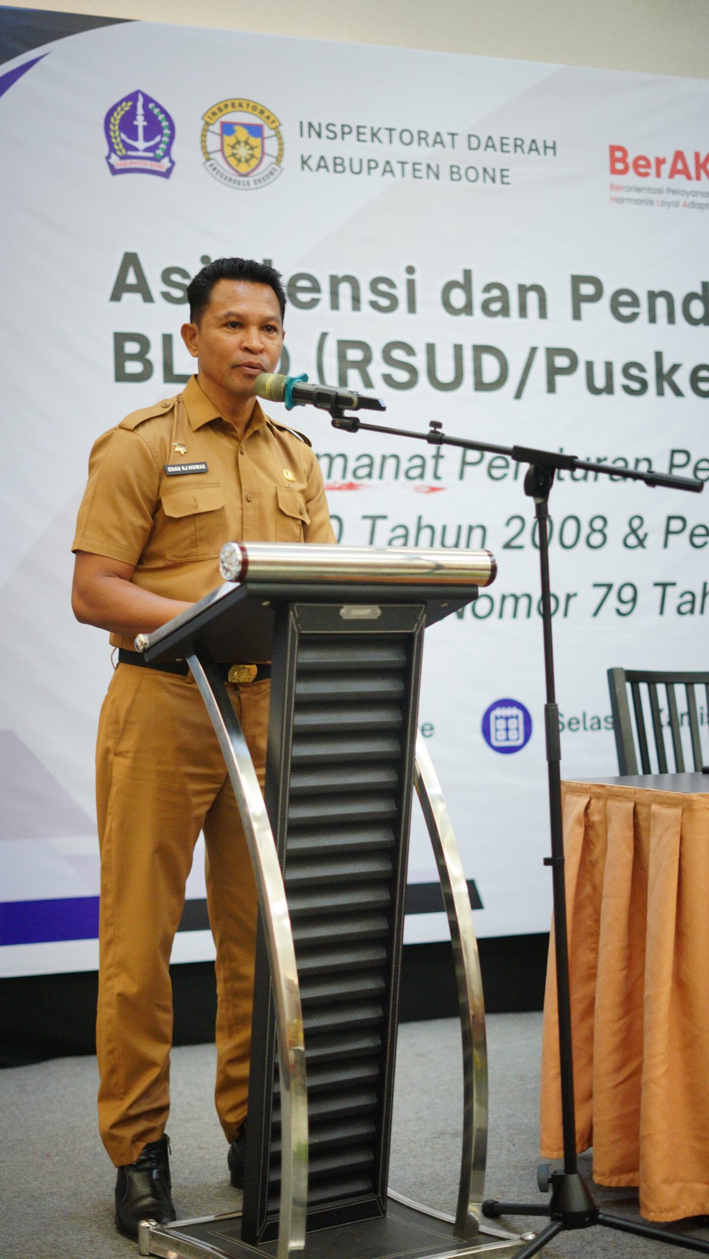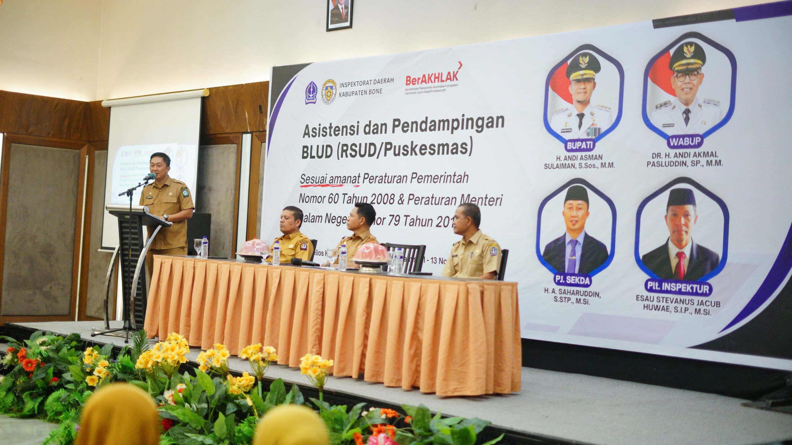 HumasBone – Mewakili Bupati Bone, Penjabat (Pj) Sekretaris Daerah (Sekda) Kab. Bone, H. Andi Saharuddin, S.STP., M.Si., membuka secara resmi Asistensi dan Pendampingan BLUD (RSUD/Puskesmas) Lingkup Pemerintah Kab. Bone. Kegiatan berlangsung di Ballroom Helios Lantai I, Jl. Langsat Watampone, pada Selasa, 11 November 2025.
