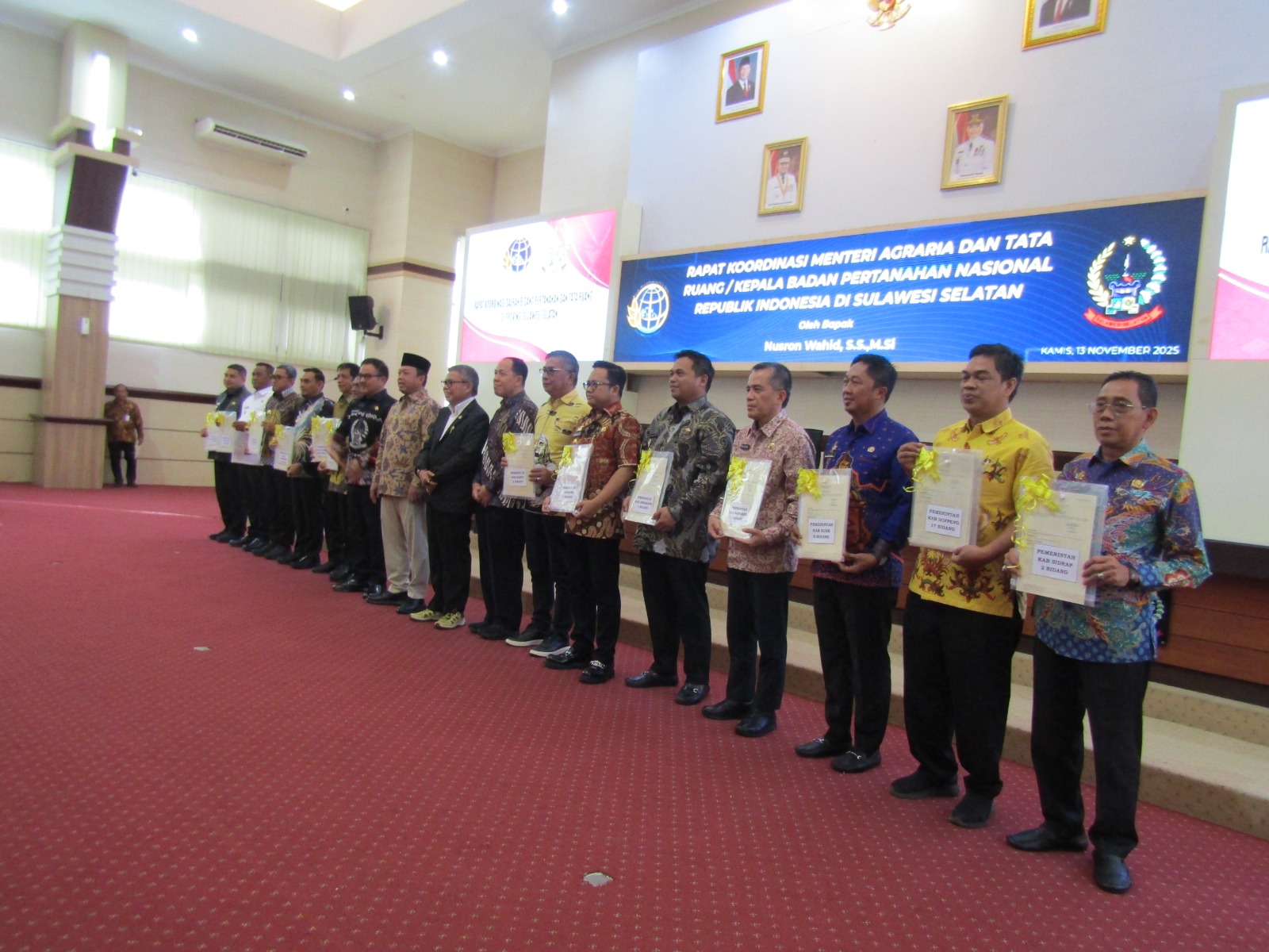 HumasBone – Penjabat (Pj) Sekretaris Daerah Kabupaten Bone, H. Andi Saharuddin, S.STP., M.Si., mewakili Bupati Bone menghadiri Rapat Koordinasi yang dipimpin oleh Menteri Agraria dan Tata Ruang/Kepala Badan Pertanahan Nasional (ATR/BPN) Republik Indonesia, Bapak Nusron Wahid, S.S., M.Si.