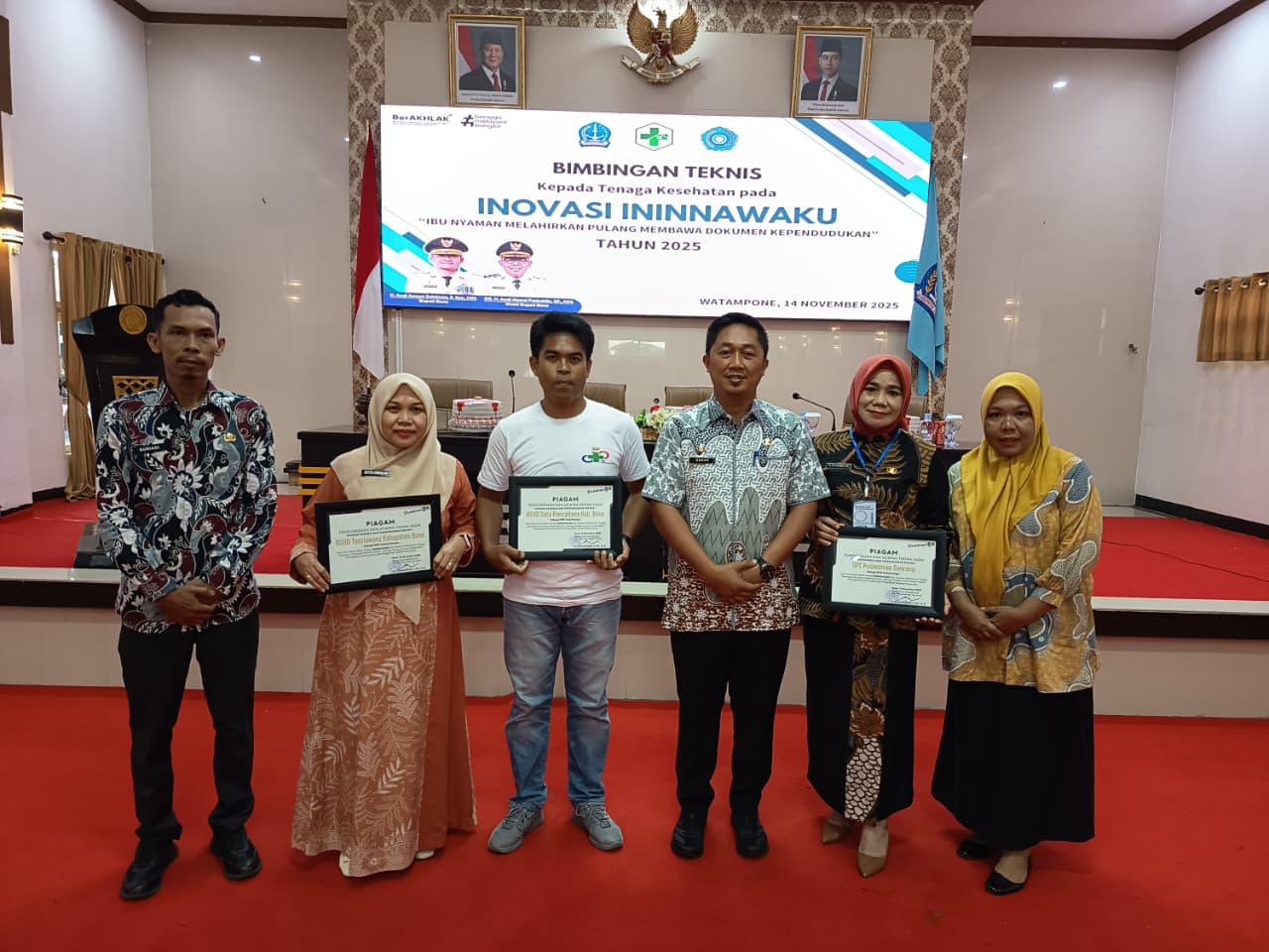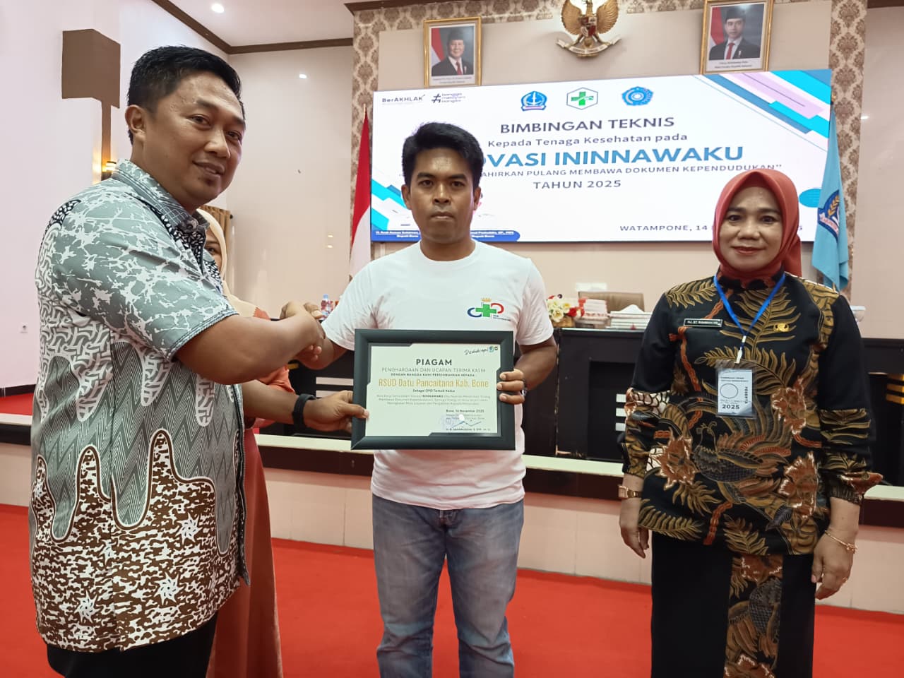 Di kesempatan ini pula dilaksanakan Penyerahan Piagam Penghargaan sebagai bentuk apresiasi atas kerja sama dan kinerja terbaik dalam mendukung inovasi pelayanan administrasi kependudukan. Penghargaan diberikan kepada: RSUD Tenriawaru, RSUD Datu Pancaitana, dan Puskesmas Cenrana.