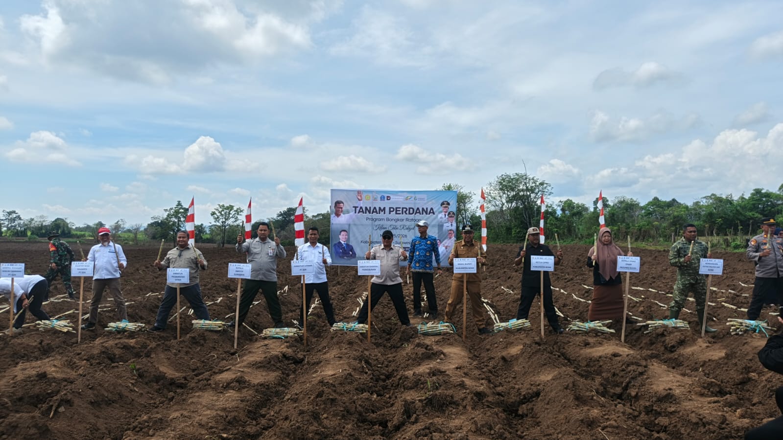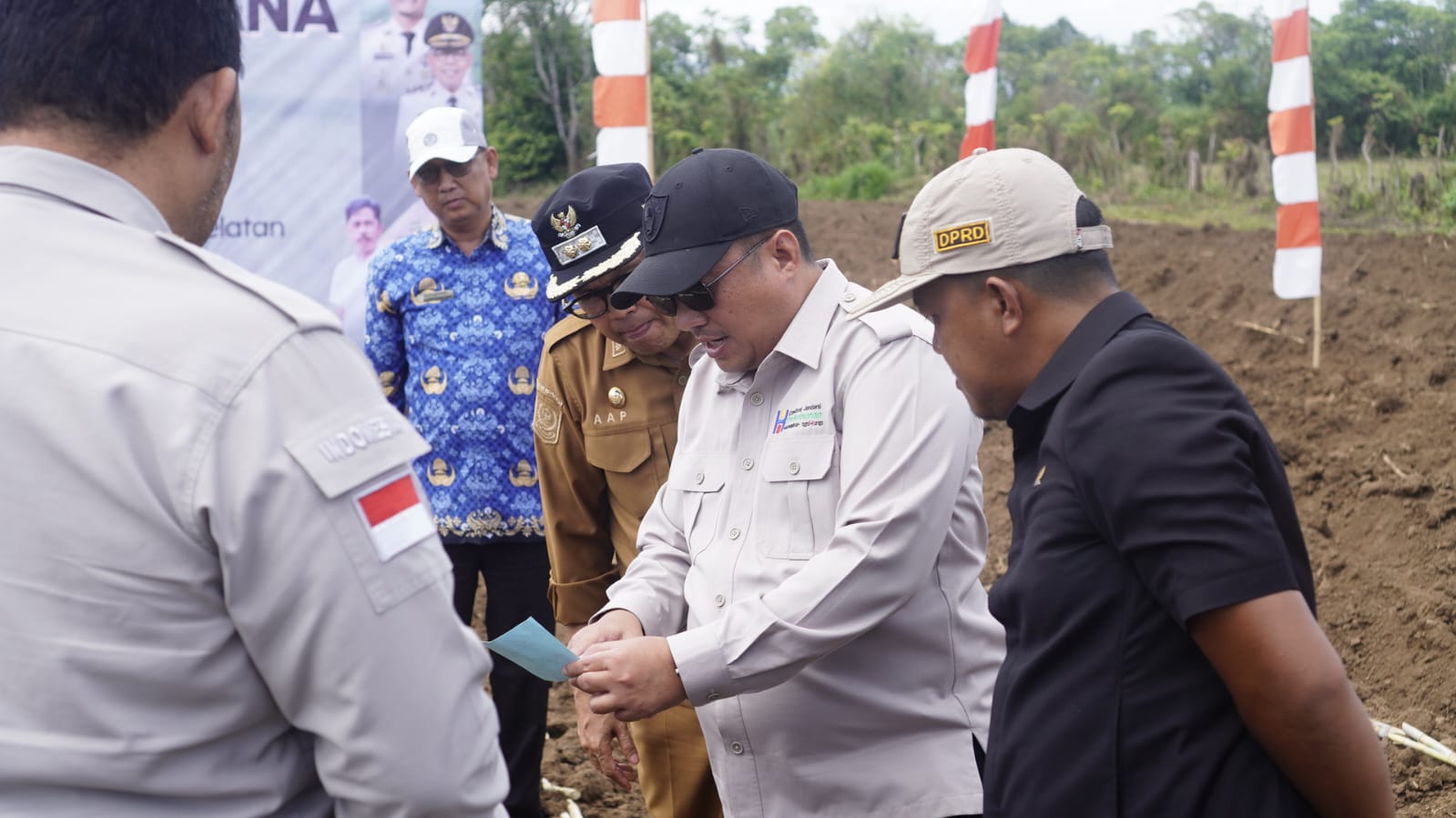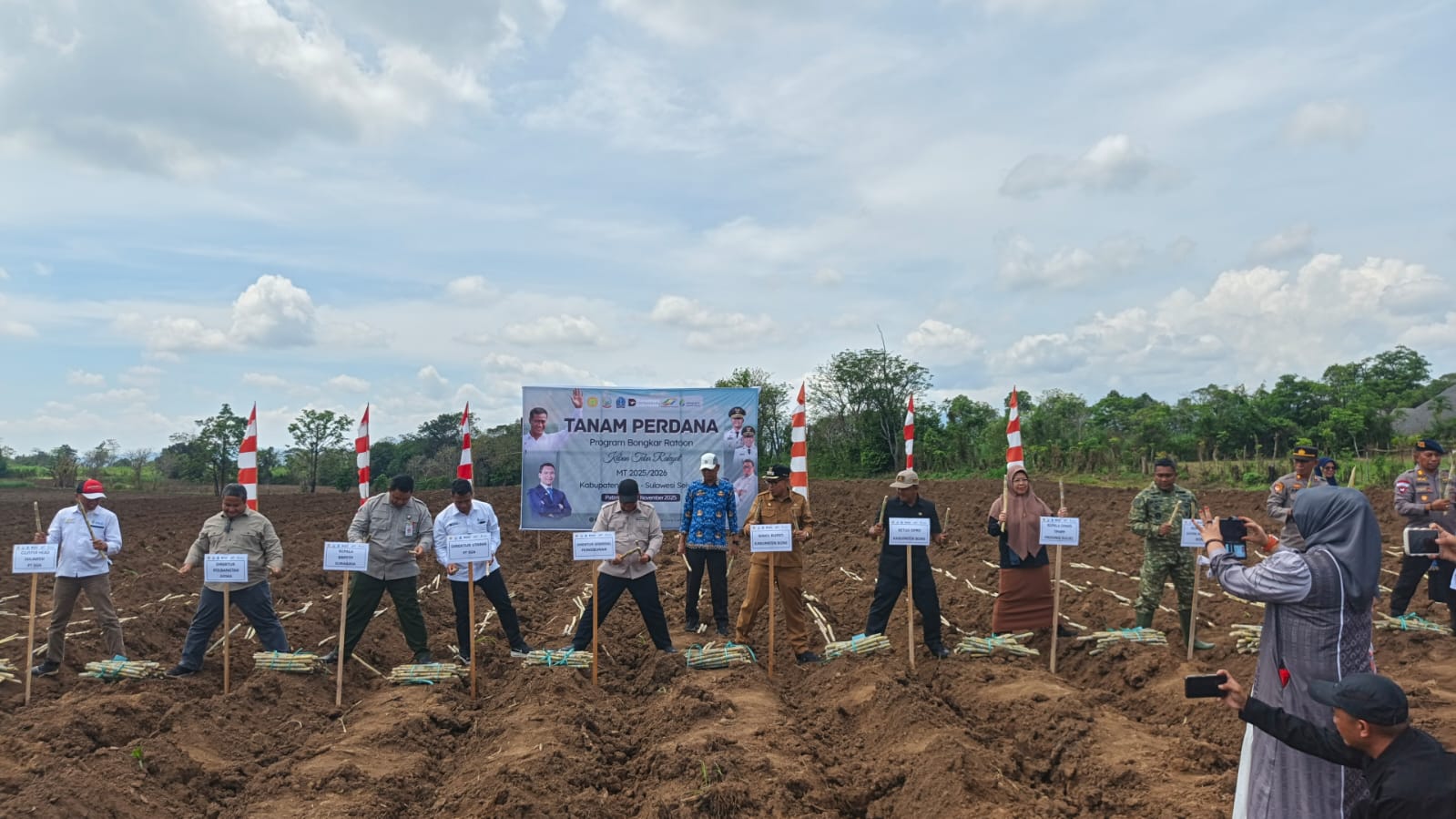 HumasBone — Wakil Bupati Bone, Dr. H. Andi Akmal Pasluddin, SP., MM., mendampingi Direktur Jenderal Perkebunan Kementerian Pertanian RI, Dr. Abd. Roni Angkat, S.TP., M.Si., pada kegiatan Tanam Perdana Program Bongkar Ratoon Kebun Tebu Rakyat (KTR) Masa Tanam 2025–2026 yang berlangsung di Kecamatan Patimpeng, Kabupaten Bone, Senin (17/11/2025).