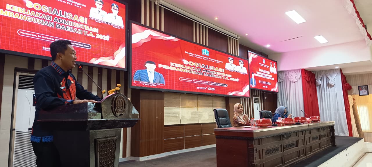 HumasBone – Pemerintah Kabupaten Bone melalui Bagian Administrasi Pembangunan Sekretariat Daerah Kabupaten Bone menggelar Sosialisasi Kebijakan Administrasi Pembangunan Daerah Tahun Anggaran 2025. Kegiatan tersebut terlaksana pada Kamis, 20 November 2025 di Gedung PKK, Jalan Andi Mappanyukki, Watampone.