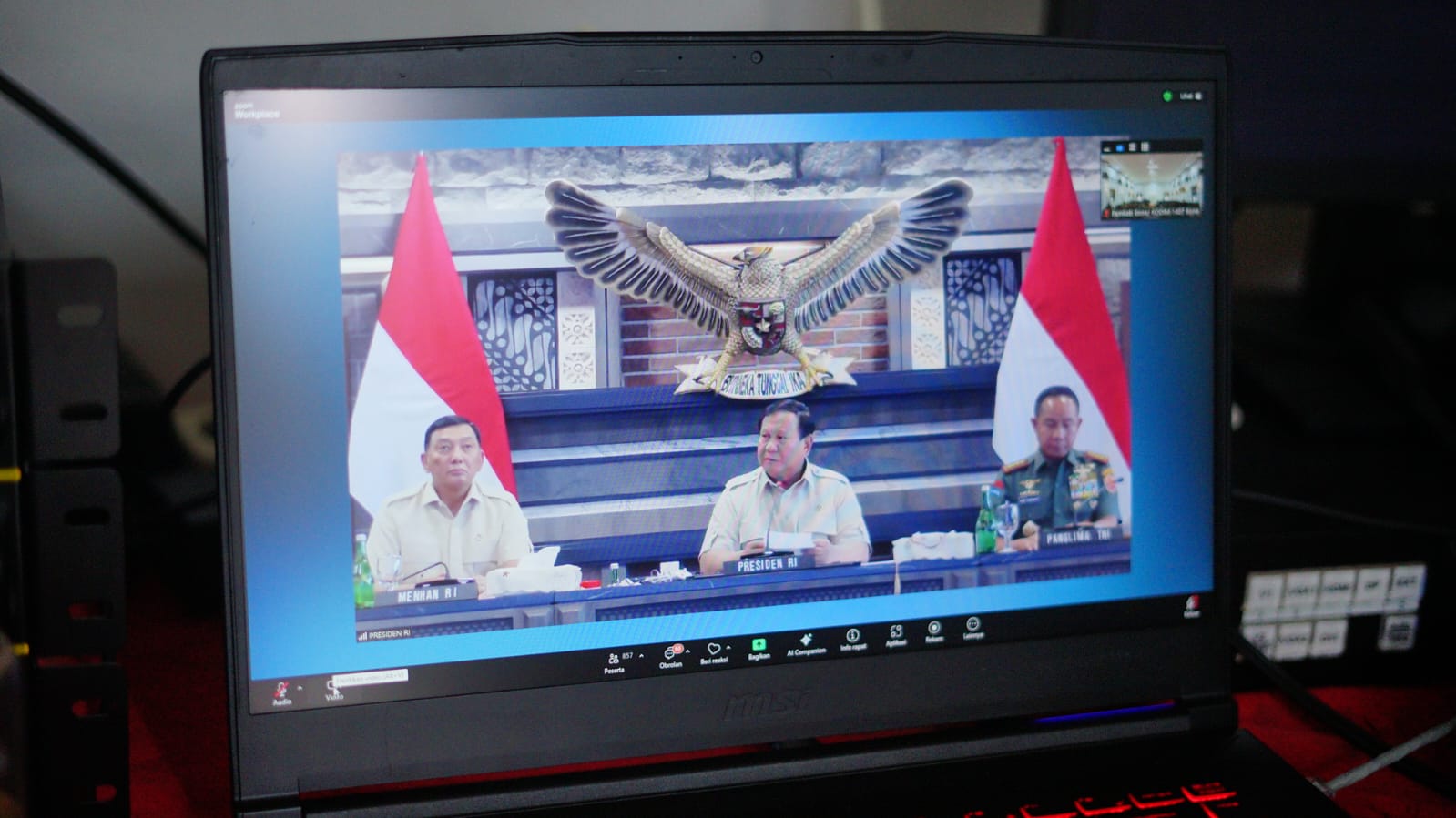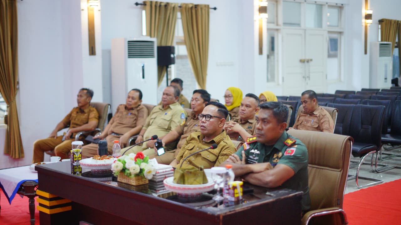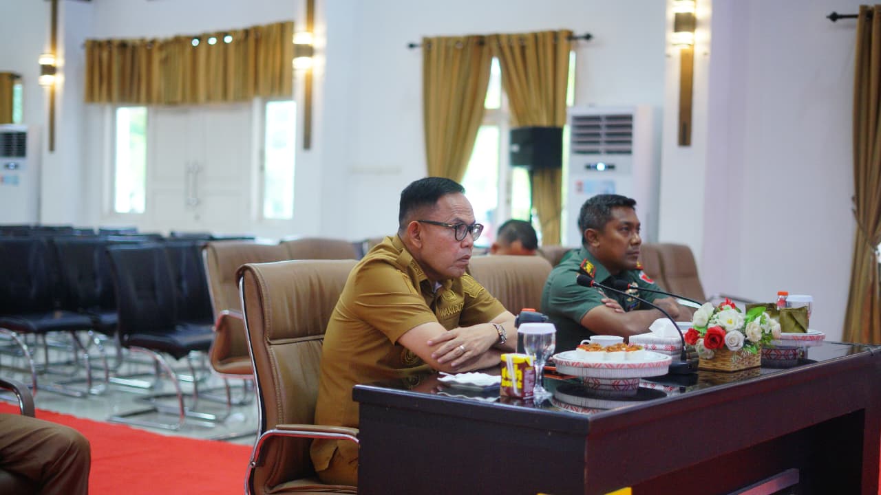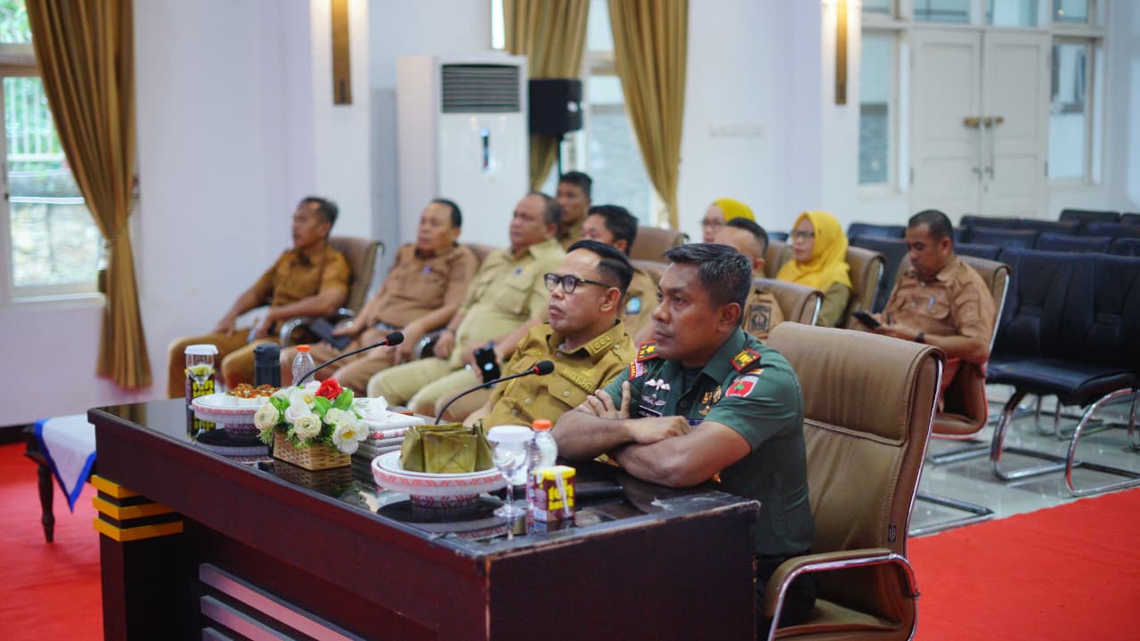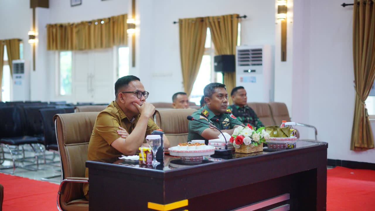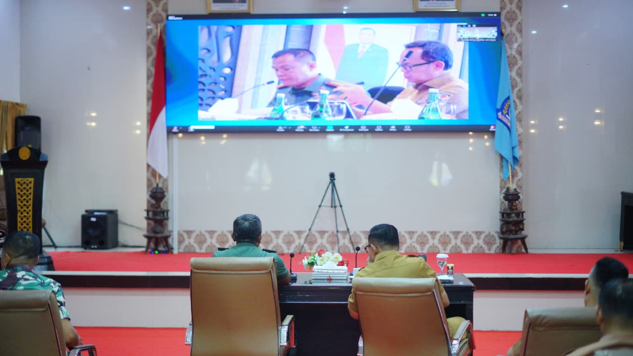 HumasBone – Wakil Bupati Bone, Dr. H. Andi Akmal Pasluddin, S.P., M.M., bersama Dandim 1407 Bone Letkol Inf. Laode Muhammad Idrus mengikuti Rapat Evaluasi Pembangunan Kawasan Desa Kreatif Mandiri Produktif (KDKMP) secara virtual dari Baruga La Teya Ri Duni, Kompleks Rumah Jabatan Bupati Bone, Selasa (25/11/2025).