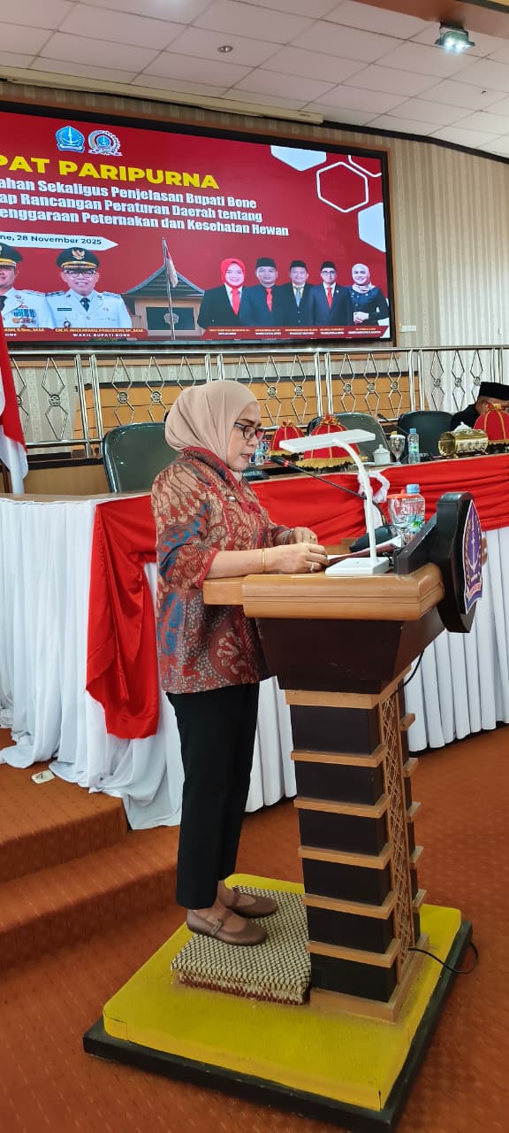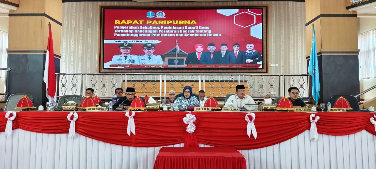 HumasBone – Wakil Bupati Bone, Dr. H. Andi Akmal Pasluddin, S.P., M.M., menghadiri dua rapat paripurna penting di DPRD Kabupaten Bone pada Jumat (28/11/2025). Pertama, ia menghadiri Rapat Paripurna Penyerahan dan Penjelasan Bupati Bone tentang Rancangan Peraturan Daerah (Ranperda) Penyelenggaraan Peternakan dan Kesehatan Hewan. Rapat ini dipimpin Ketua DPRD Kabupaten Bone, A. Tenri Walinonong, S.E.