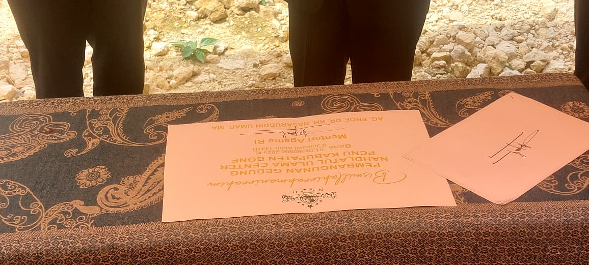 Acara peletakan batu pertama berlangsung dengan khidmat serta dihadiri oleh jajaran pemerintah daerah, pengurus PCNU Kabupaten Bone, tokoh agama, dan masyarakat.(wf)