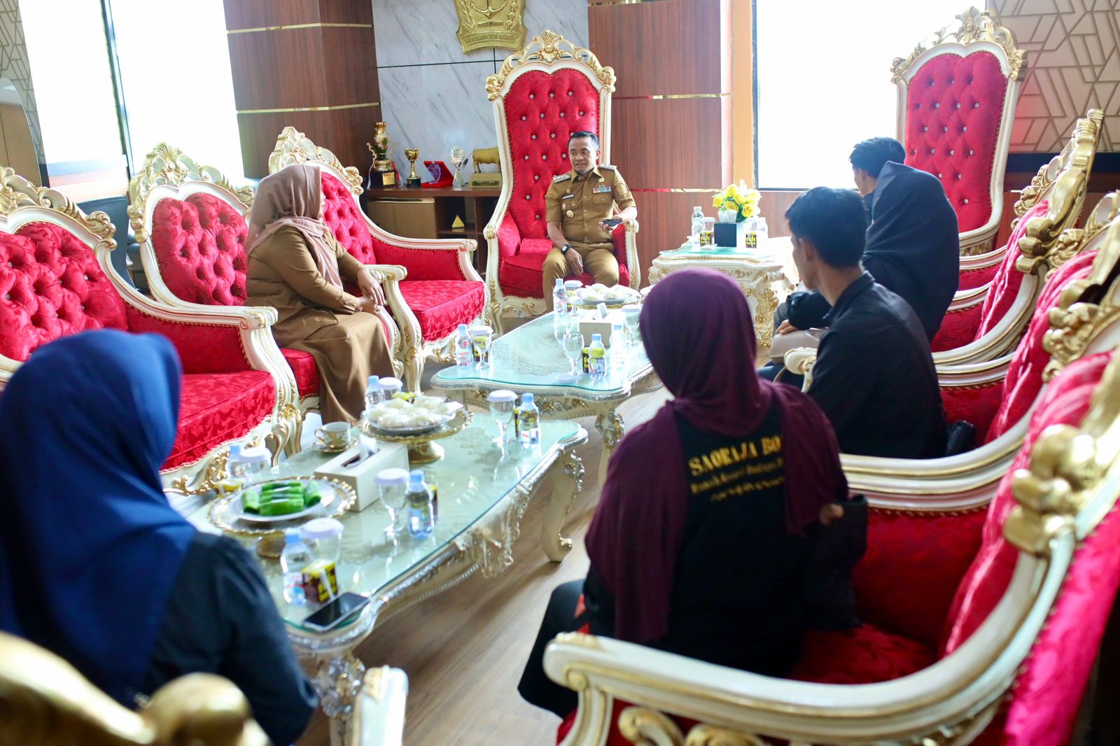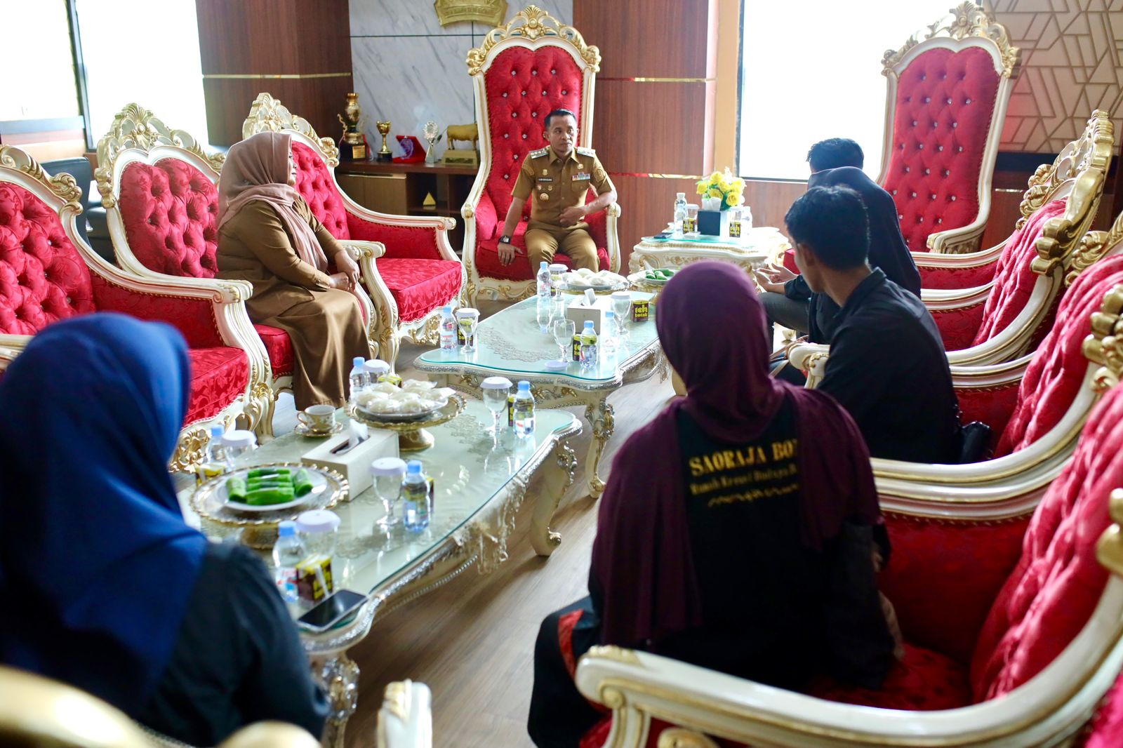 HumasBone – Bupati Bone H. Andi Asman Sulaiman, S.Sos., M.M., menerima audiensi Rumah Kreasi Budaya Bangsa Bone (RKBB) yang dipimpin Ketua RKBB, Malik Fajrin. Pertemuan tersebut berlangsung di Ruang Kerja Bupati Bone, Kantor Bupati Bone, dan turut dihadiri oleh Kepala Dinas Kebudayaan Kabupaten Bone.