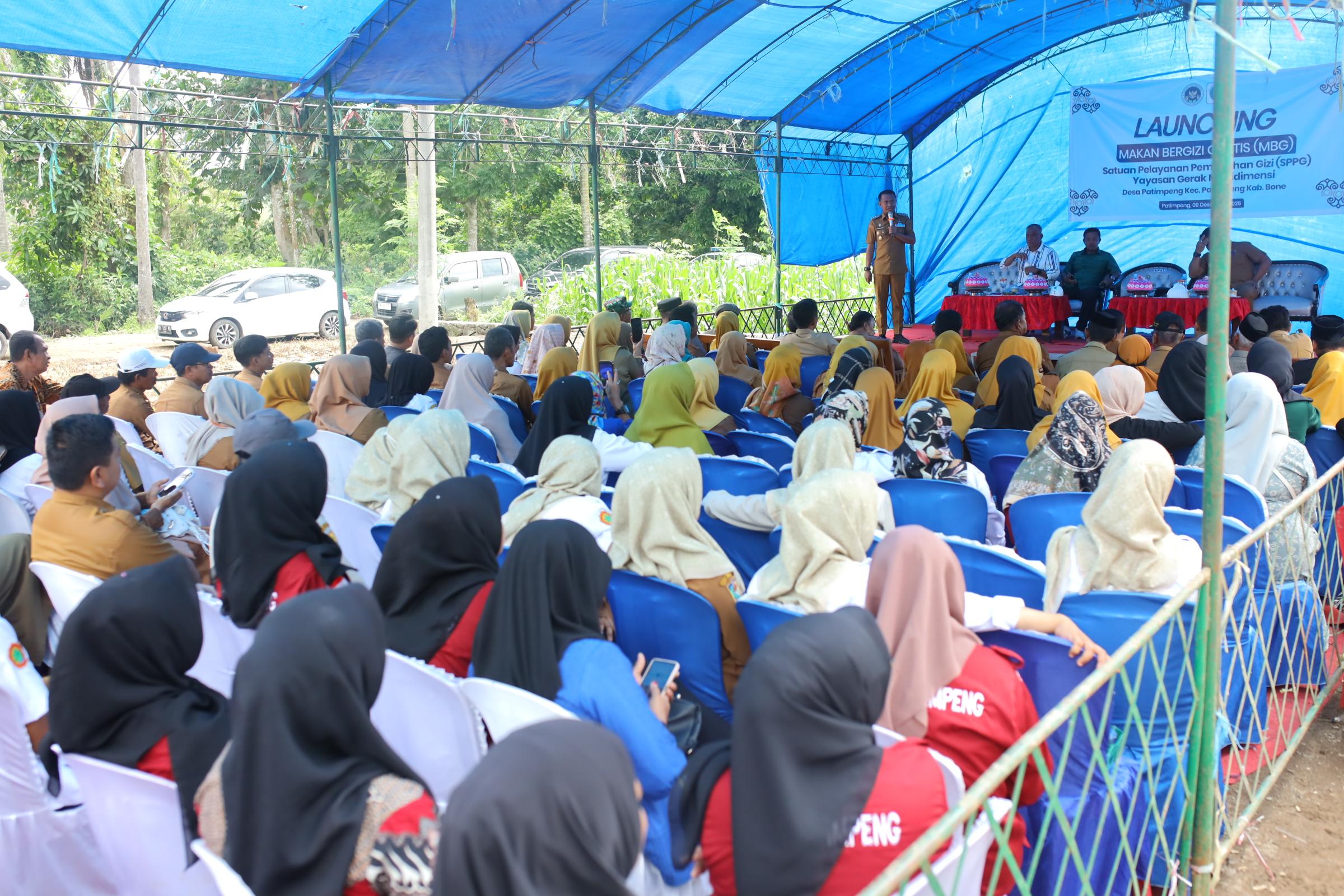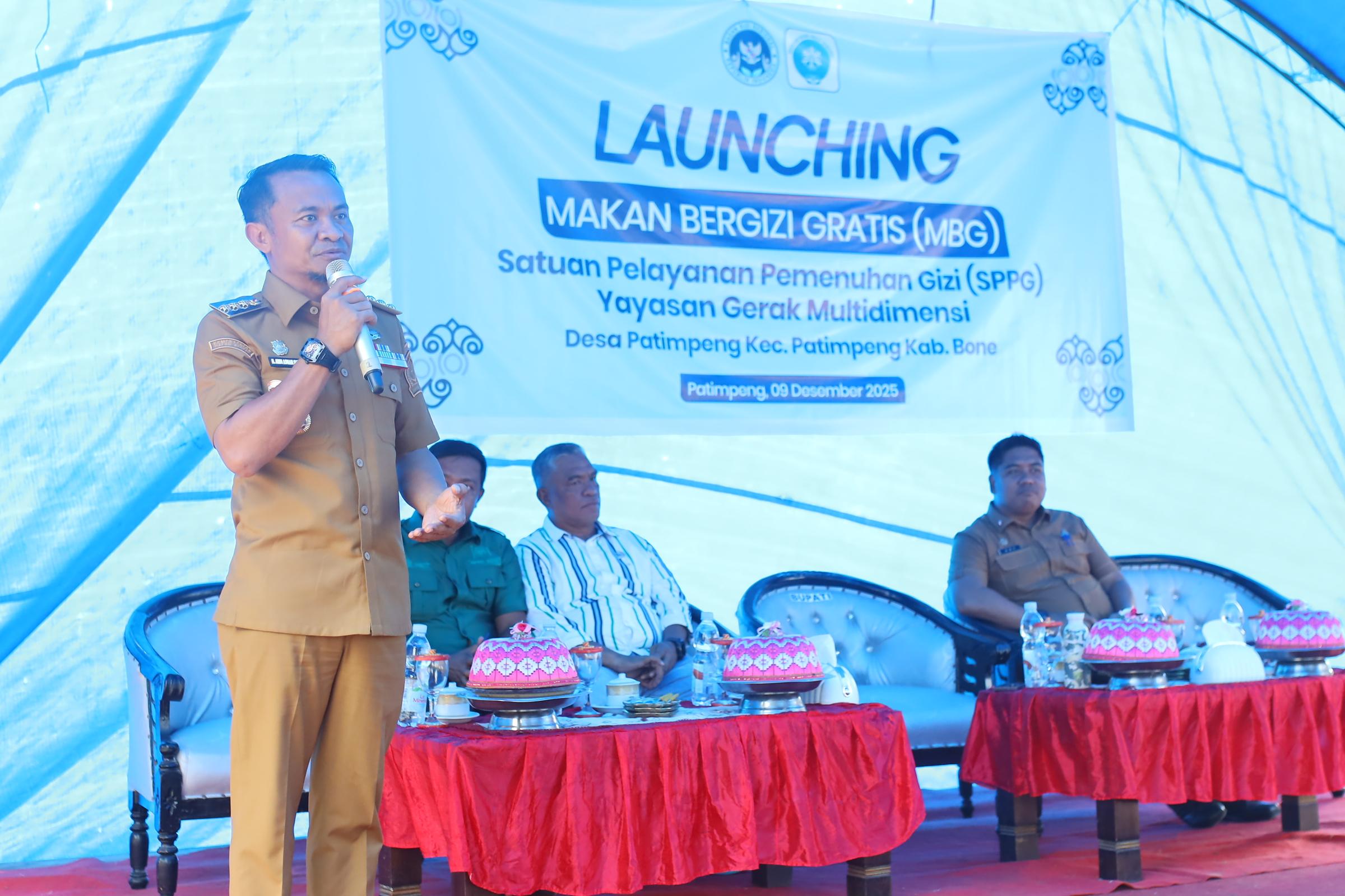 HumasBone – Bupati Bone H. Andi Asman Sulaiman, S.Sos., M.M. bersama Wakil Bupati Bone secara resmi meluncurkan Program Makan Bergizi Gratis (MBG) yang dijalankan melalui Satuan Pelayanan Pemenuhan Gizi (SPPG) Yayasan Gerak Multidimensi. Kegiatan berlangsung di Desa Patimpeng, Kecamatan Patimpeng, Selasa (09/12/2025).
