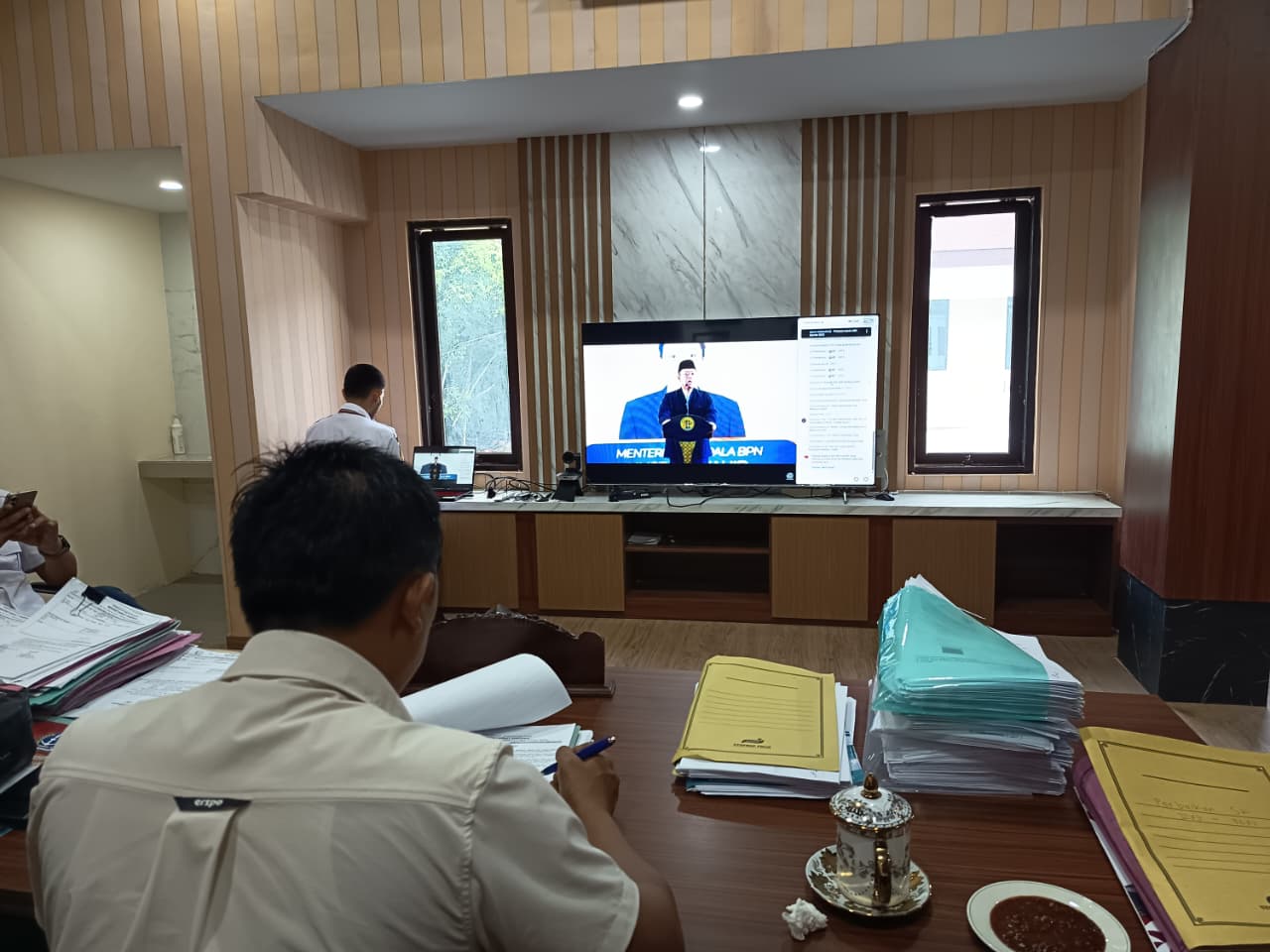 Pj. Sekda Bone mengikuti kegiatan ini dari ruang kerjanya di Kantor Bupati Bone, sebagai bentuk dukungan pemerintah daerah terhadap upaya penataan kembali penguasaan, pemilikan, penggunaan, dan pemanfaatan tanah untuk kesejahteraan masyarakat.(wf)
