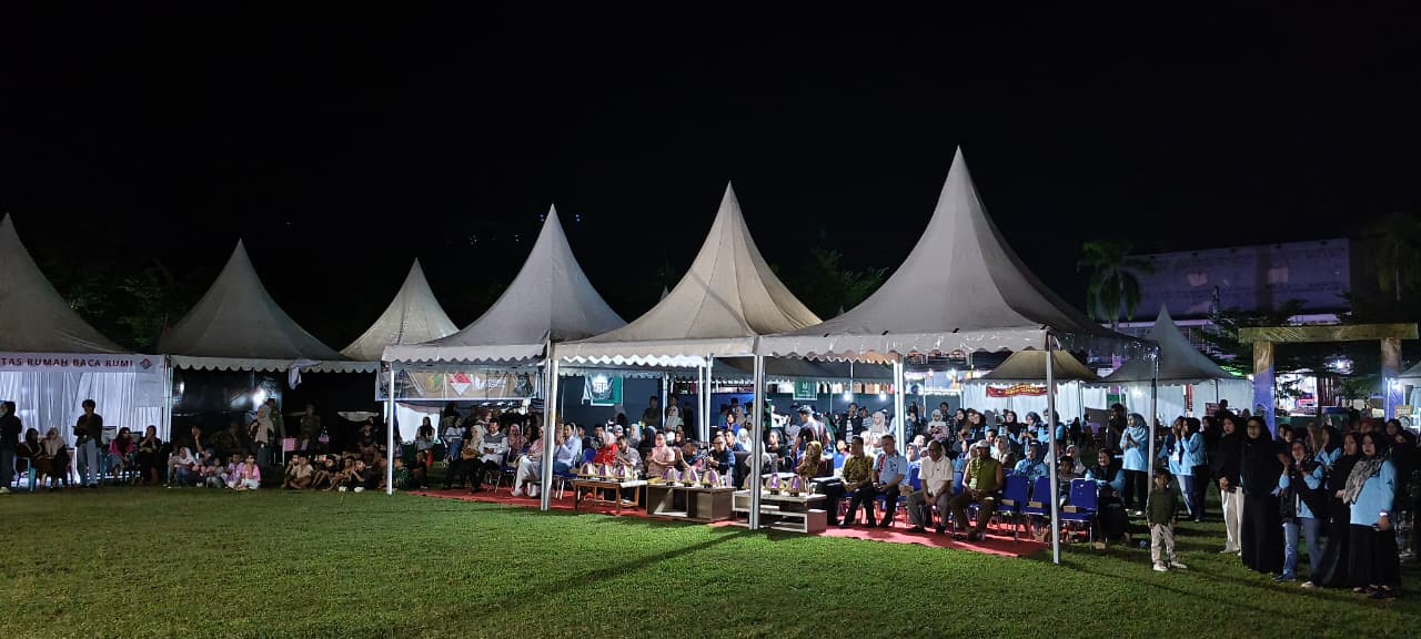 HumasBone – Wakil Bupati Bone, Dr. H. Andi Akmal Pasluddin, S.P., M.M., didampingi Wakil Ketua TP-PKK Kabupaten Bone, Hj. Maya Damayanti, S.P., secara resmi menutup Kegiatan Festival Literasi yang mengusung tema “Literasi Kuat dalam Bingkai Bone Maberre”. Kegiatan ini diselenggarakan oleh Dinas Perpustakaan dan Kearsipan Kabupaten Bone dan berlangsung di halaman Perpustakaan Dispeka jl. Kalimantan , Jumat 12 Desember 2025.