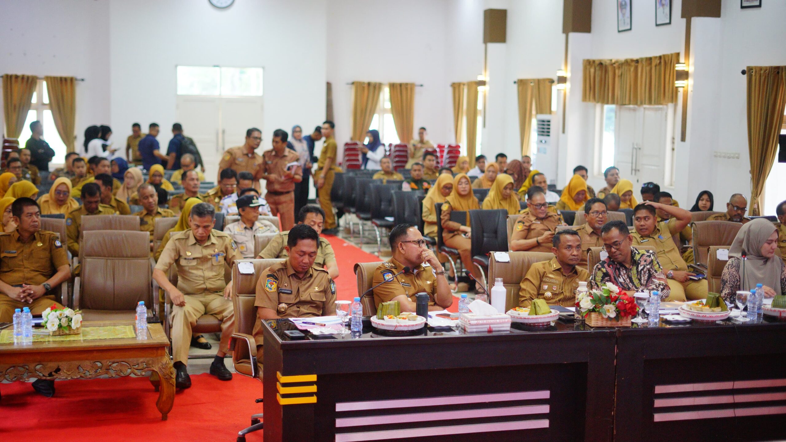 HumasBone – Bupati Bone, H. Andi Asman Sulaiman, S.Sos., M.M., bersama Wakil Bupati Bone, Dr. H. Andi Akmal Pasluddin, SP., M.M., dan Pj. Sekretaris Daerah Kab. Bone, H. A. Saharuddin, S.STP., M.SI., memimpin evaluasi kinerja jajaran Asisten dan Organisasi Perangkat Daerah (OPD) dalam penerapan Talenta ASN (Profilling ASN) Lingkup Pemerintah Kabupaten Bone Tahun 2025.