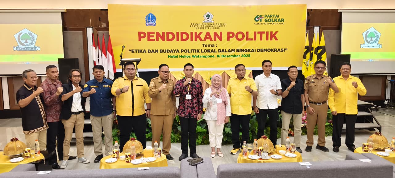Sementara itu, Ketua DPD II Partai Golkar Kabupaten Bone menyampaikan bahwa penguatan kelembagaan partai politik menjadi hal strategis dalam menciptakan kader-kader politik yang berintegritas, berkompeten, dan mampu menjawab tantangan demokrasi di tingkat lokal.