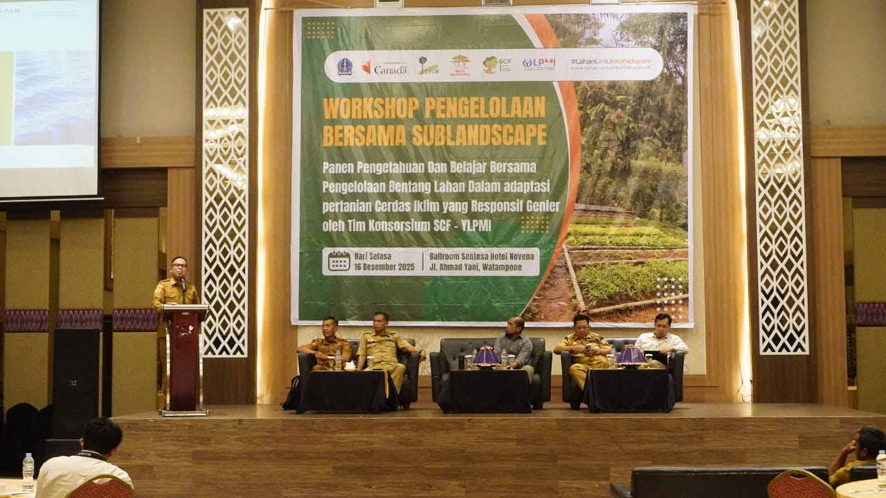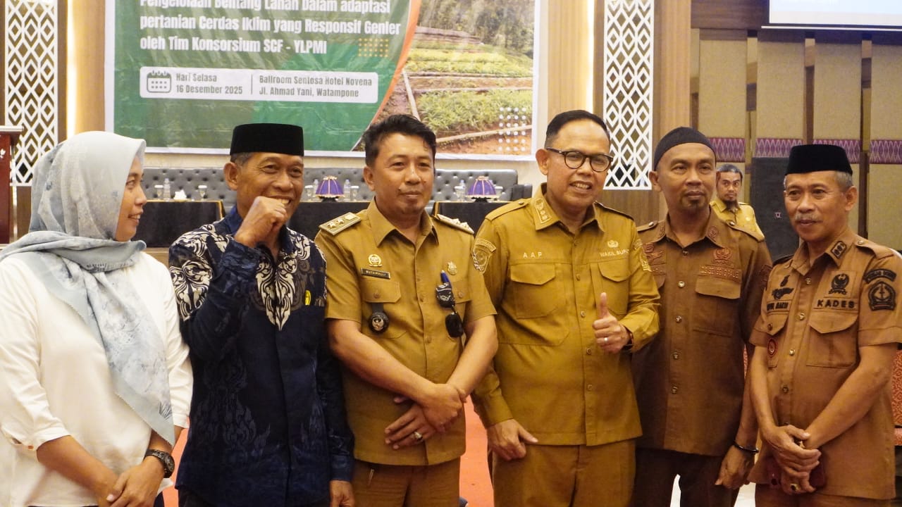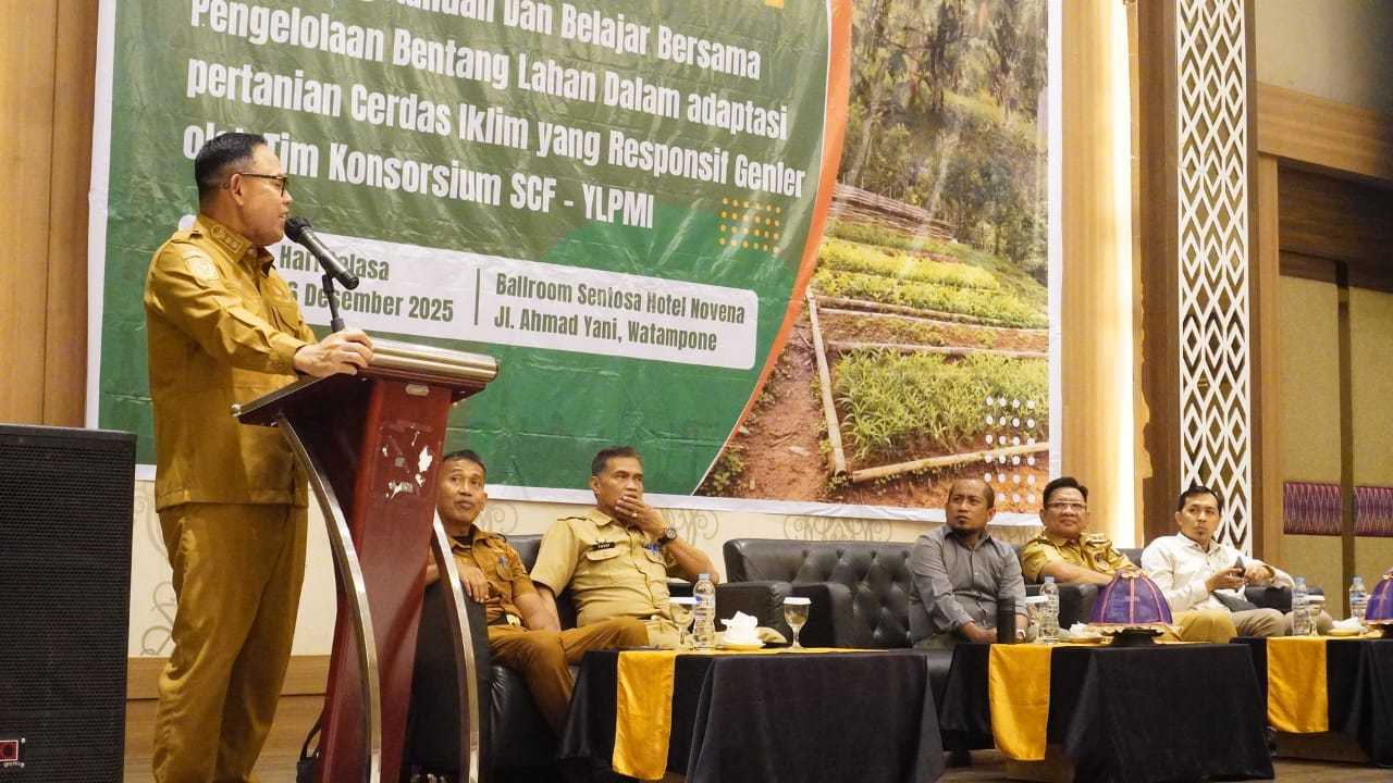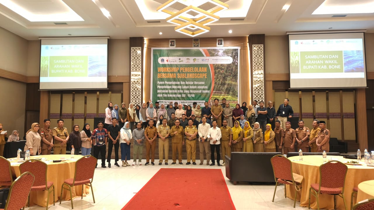 HumasBone — Wakil Bupati Bone, Dr. H. Andi Akmal Pasluddin, S.P., M.M., menghadiri Workshop Pengelolaan Bersama Sublandscape Panen Pengetahuan dan Belajar Bersama Pengelolaan Bentang Lahan dalam Adaptasi Pertanian Cerdas Iklim yang Responsif Gender, yang dilaksanakan oleh Tim Konsorsium SCF–YLPMI.