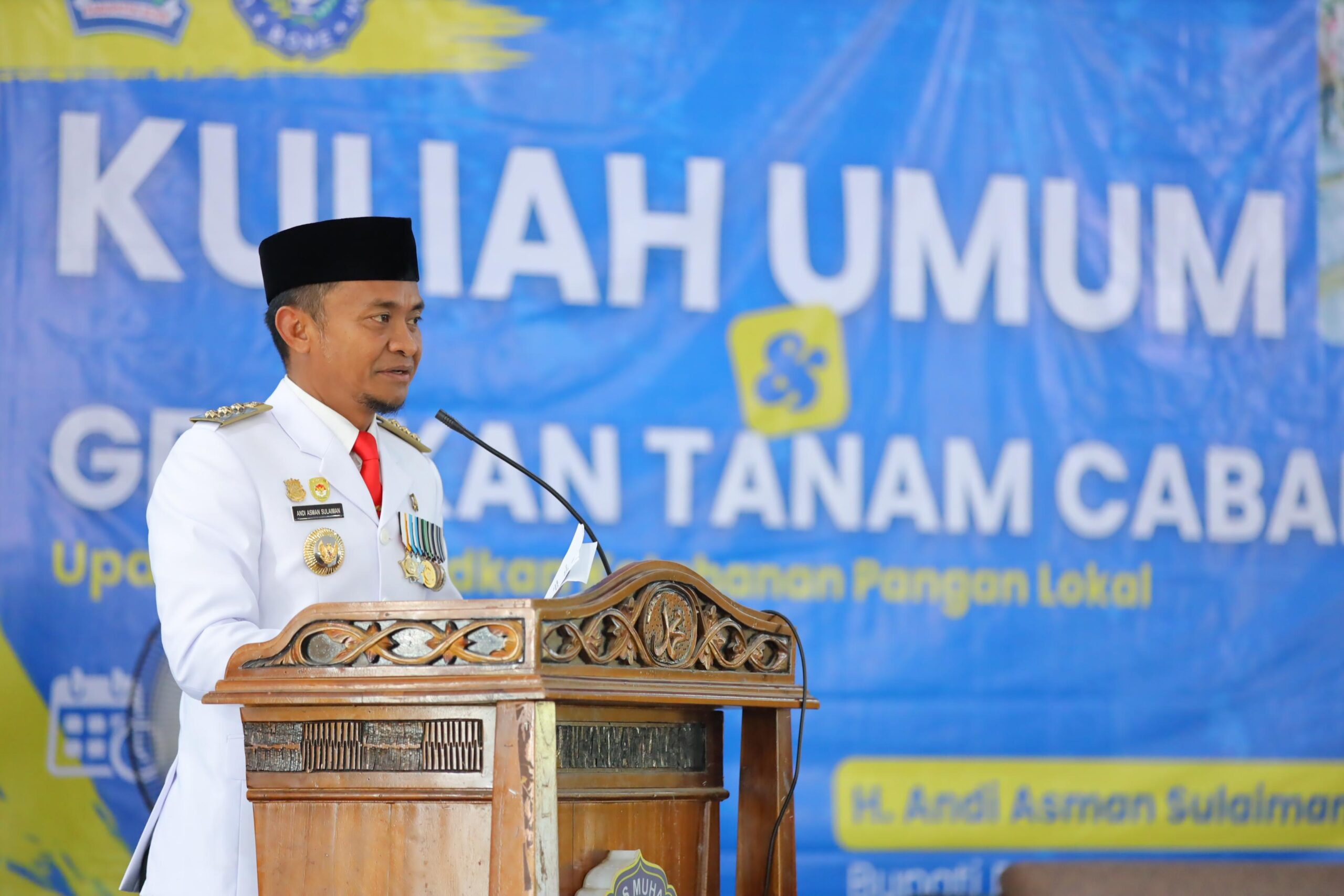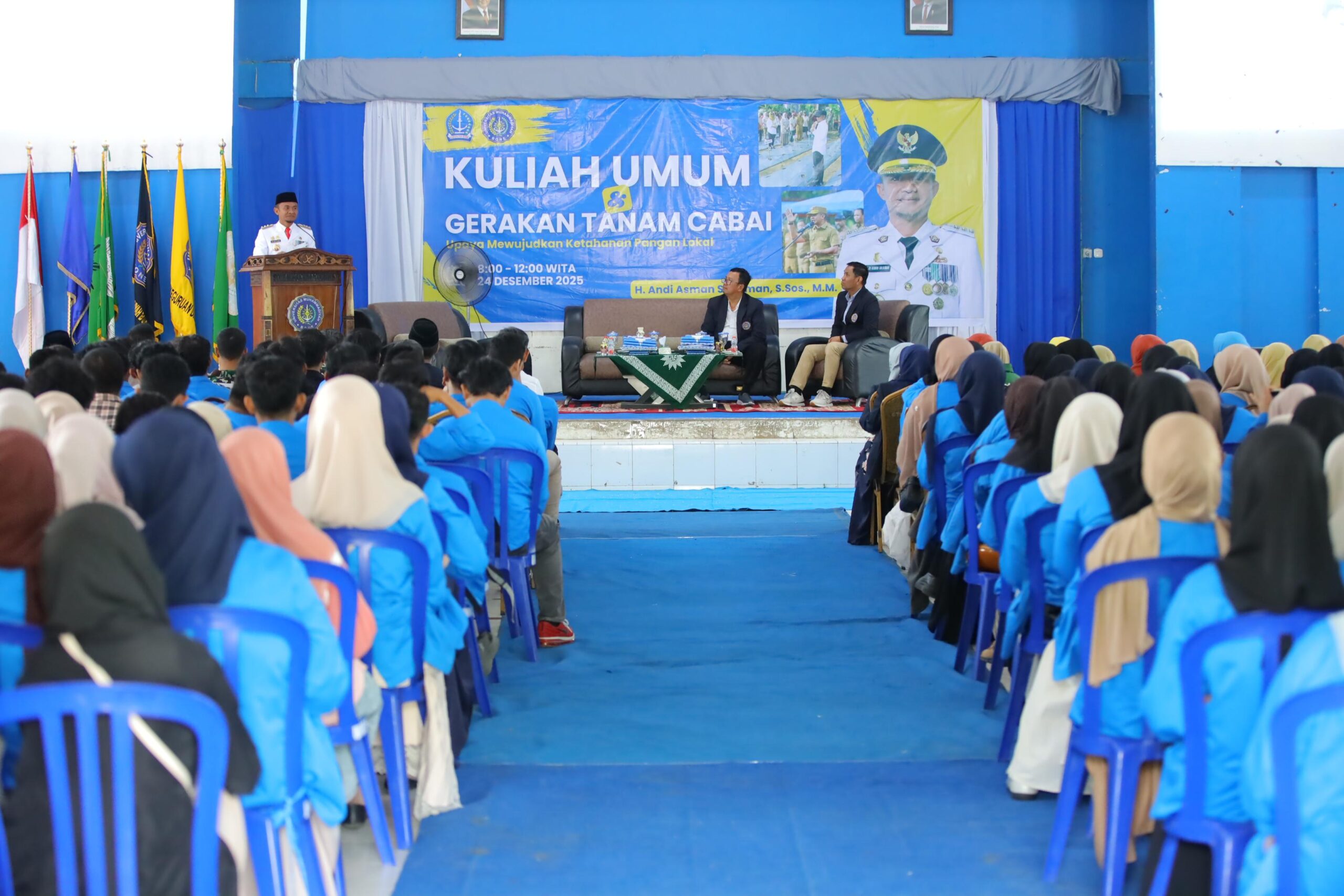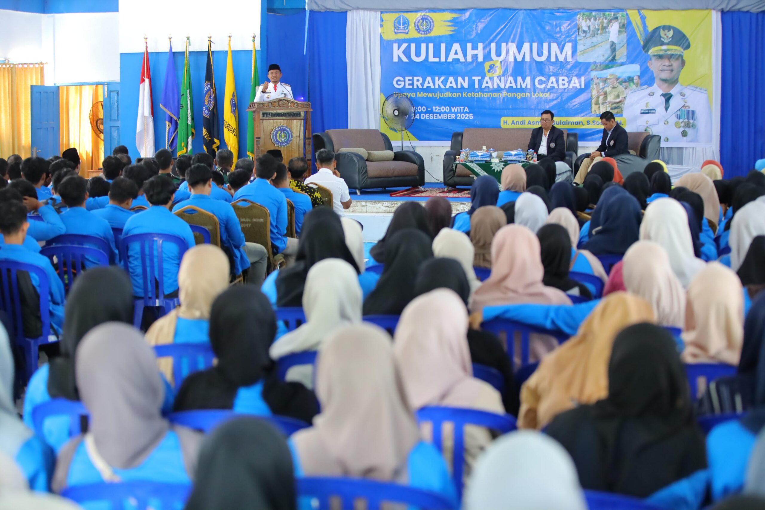 HumasBone – Bupati Bone, H. Andi Asman Sulaiman, S.Sos., M.M., didampingi Rektor Universitas Muhammadiyah Bone (UNIM Bone) Dr. H. Muhammad Jafar, S.Pd., M.Pd., memberikan kuliah umum sekaligus mengikuti kegiatan tanam cabai bersama di Kampus UNIM Bone, Selasa, 24 Desember 2025. Kegiatan ini menjadi wujud komitmen Pemerintah Kabupaten Bone dalam memperkuat ketahanan pangan daerah.