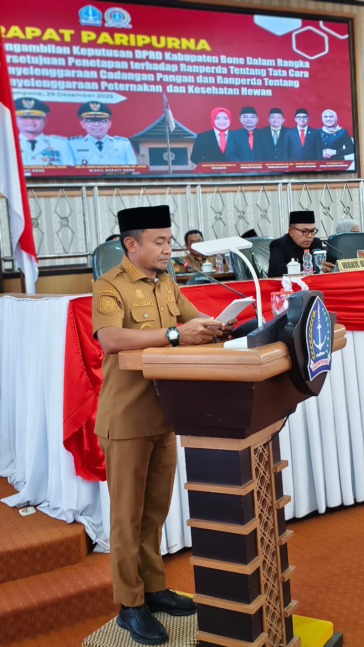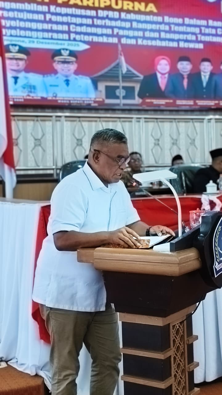 Dalam sambutannya, Bupati Bone menyampaikan apresiasi dan dukungan penuh kepada DPRD Bone atas sinergi dan komitmen dalam memperkuat landasan regulasi daerah. Menurutnya, kedua Ranperda tersebut merupakan instrumen strategis dalam menjaga ketahanan pangan, meningkatkan tata kelola sektor peternakan, serta menjamin kesehatan hewan demi kesejahteraan masyarakat.