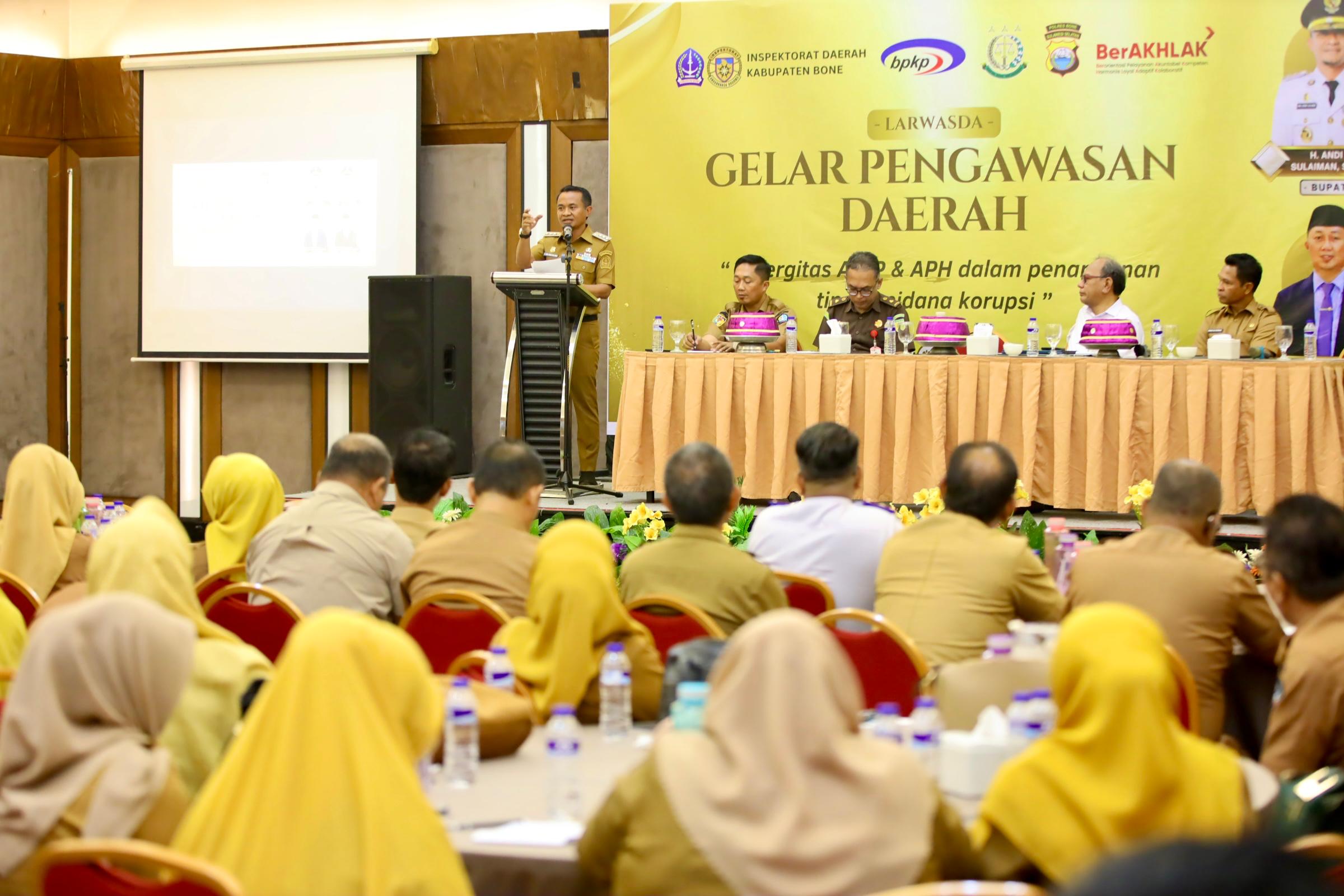 HumasBone – Bupati Bone, H. Andi Asman Sulaiman, S.Sos., M.M., secara resmi membuka kegiatan Gelar Pengawasan Daerah (LARWASDA) Tahun 2025 yang mengusung tema “Sinergitas APIP & APH dalam Penanganan Tindak Pidana Korupsi”. Kegiatan ini berlangsung di Hotel Helios Watampone dan menjadi momentum strategis dalam memperkuat upaya pencegahan serta penindakan tindak pidana korupsi di lingkungan Pemerintah Kabupaten Bone.
