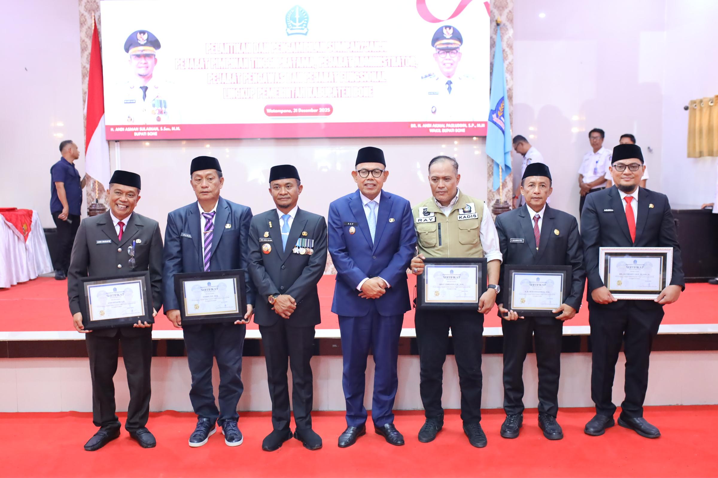 Pelantikan tersebut berlangsung di Baruga La Teya Riduni, Kompleks Rumah Jabatan Bupati Bone, pada Rabu, 31 Desember 2025. Kegiatan ini merupakan bagian dari upaya penyegaran organisasi serta peningkatan kinerja aparatur sipil negara guna mewujudkan tata kelola pemerintahan yang profesional, efektif, dan berorientasi pada pelayanan publik.