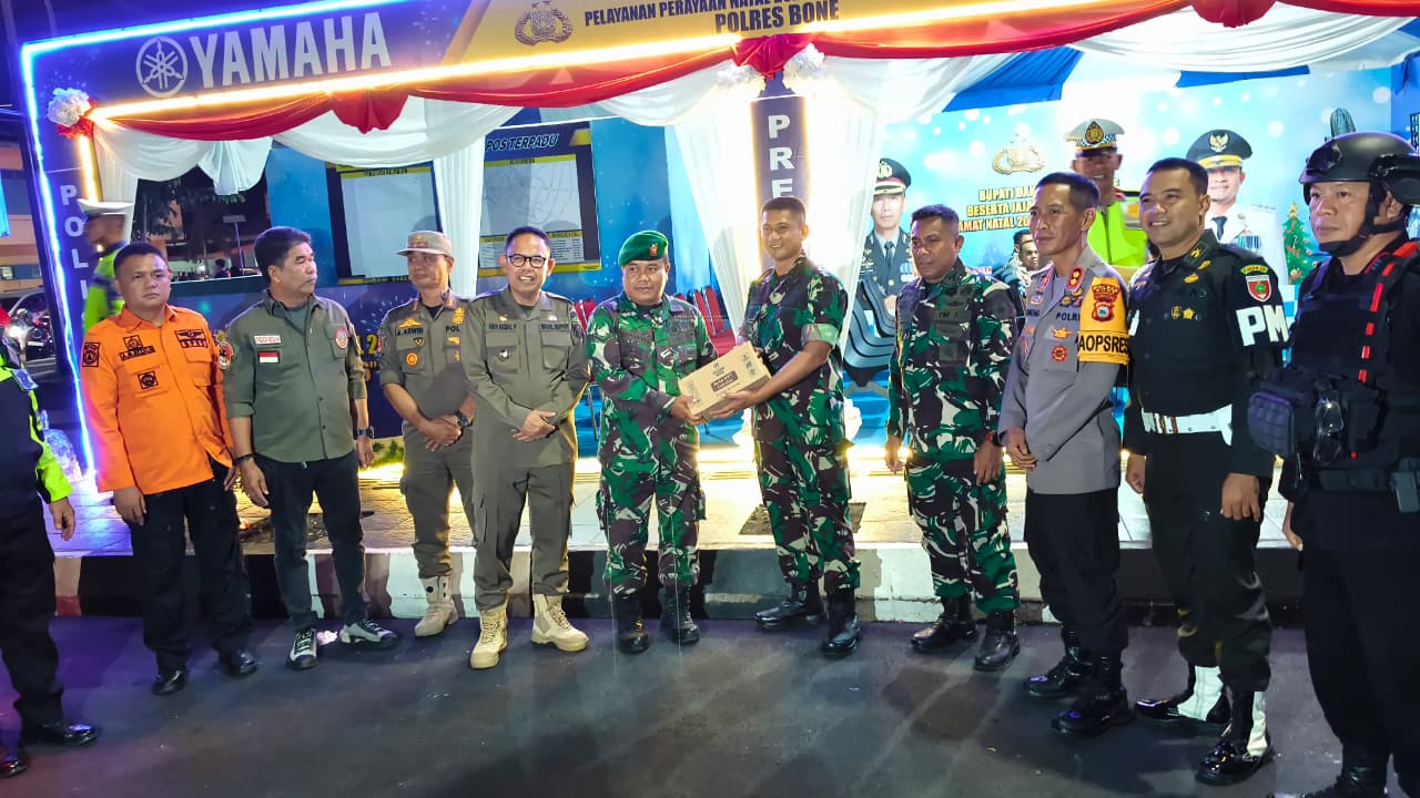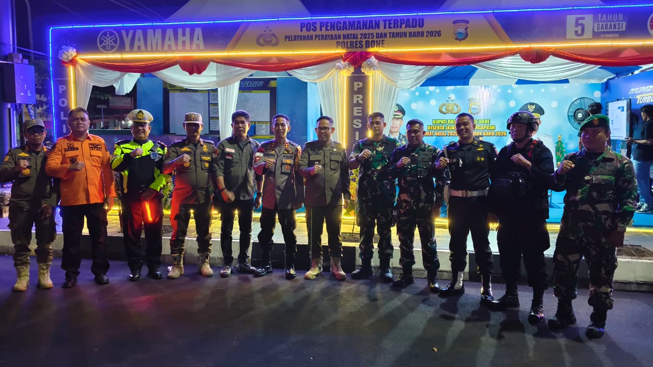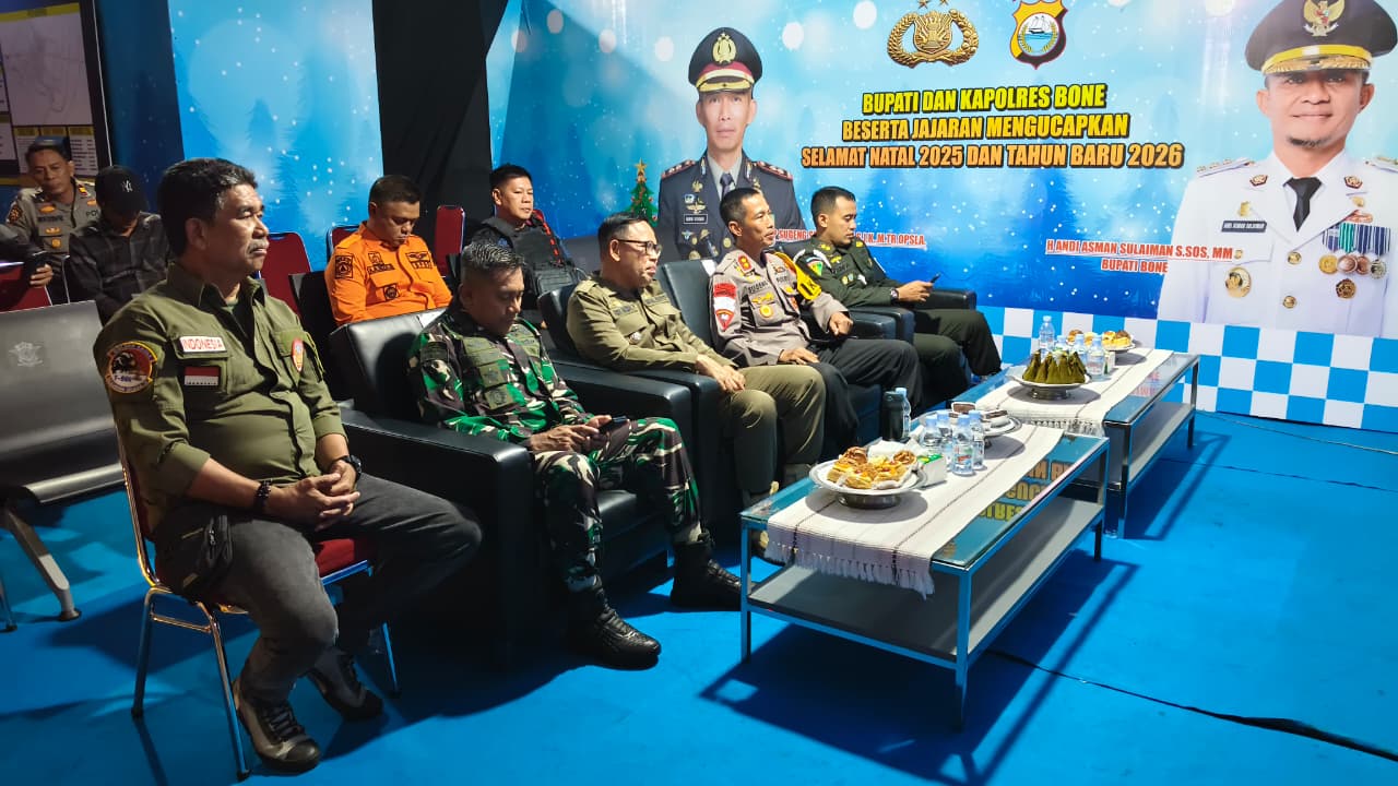 Patroli gabungan tersebut menyasar titik-titik pengamanan strategis, khususnya Pos Natal dan Tahun Baru yang berada di Jalan Petta Ponggawae, tepat di depan Rumah Jabatan Bupati Bone, pada Rabu, 31 Desember 2025. Dalam kesempatan tersebut, Wakil Bupati Bone dan jajaran Forkopimda juga berinteraksi langsung dengan petugas jaga untuk memberikan motivasi sekaligus memastikan kesiapsiagaan dalam memberikan pelayanan kepada masyarakat.
