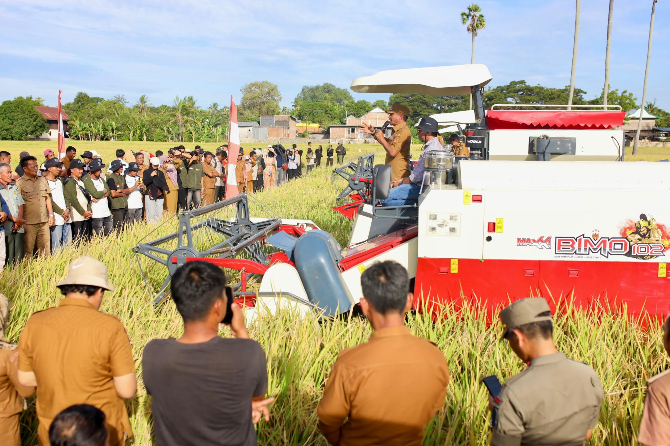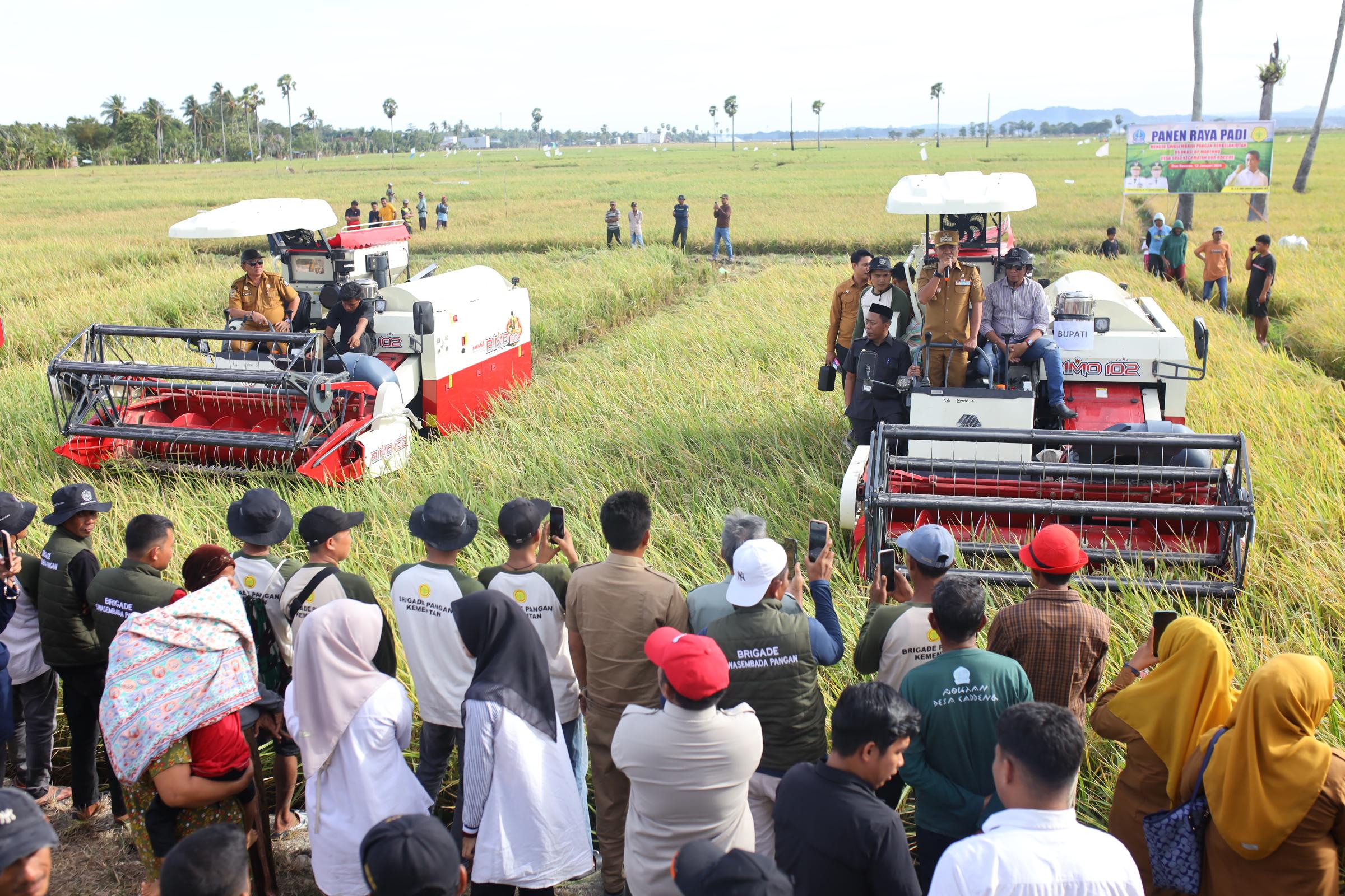 HumasBone – Bupati Bone, H. Andi Asman Sulaiman, S.Sos., M.M., melaksanakan Panen Raya Padi sebagai bagian dari upaya mewujudkan swasembada pangan berkelanjutan di Kabupaten Bone. Kegiatan tersebut berlangsung di lokasi Brigade Pangan Marennu, Desa Solo, Kecamatan Dua Boccoe, pada Senin, 12 Januari 2026.