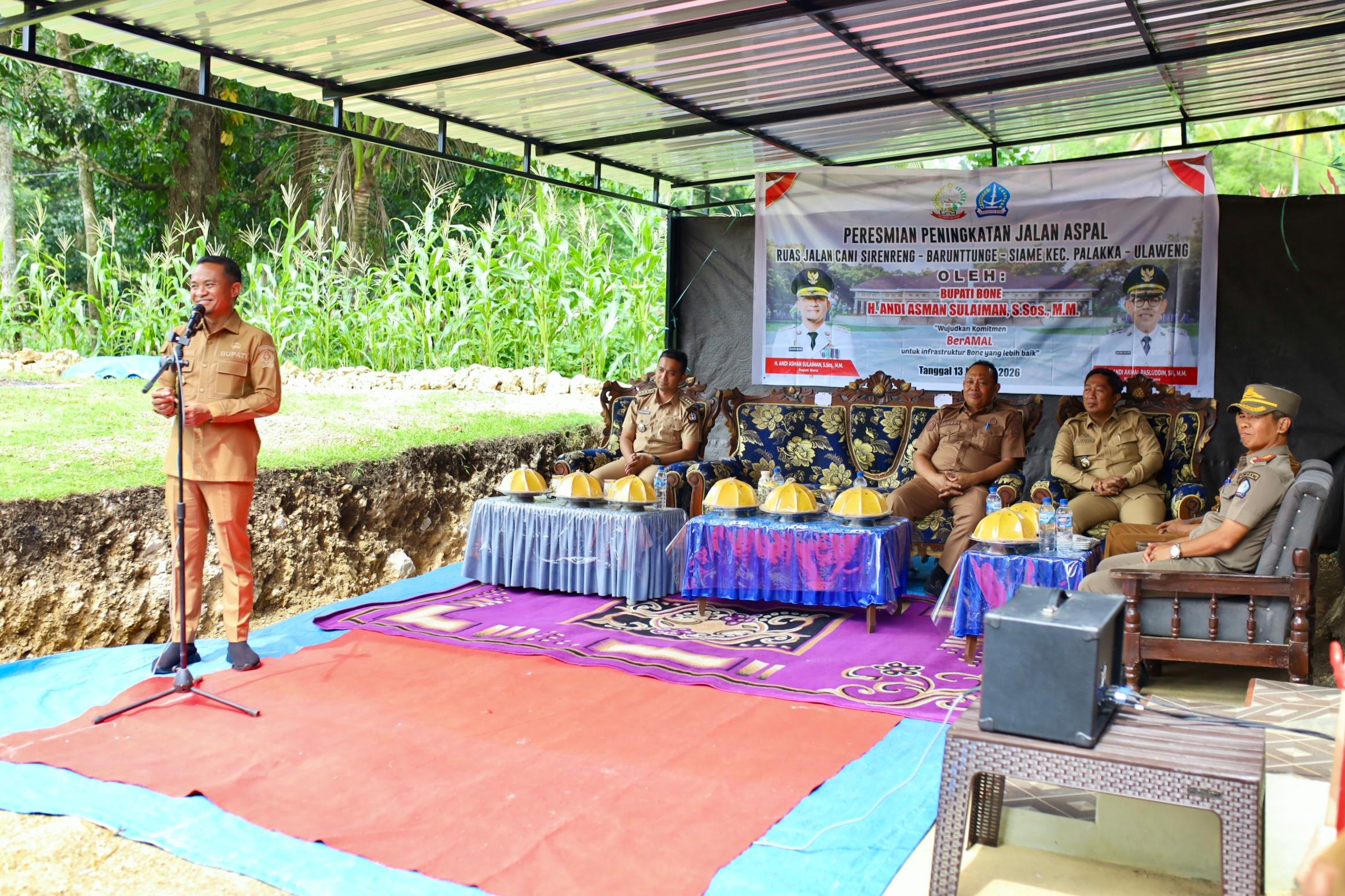 HumasBone — Bupati Bone H. Andi Asman Sulaiman, secara resmi meresmikan peningkatan jalan aspal pada ruas Cani Sidenreng–Baruttunge–Siame, Kecamatan Palakka, sebagai bagian dari komitmen Pemerintah Kabupaten Bone dalam mewujudkan pembangunan infrastruktur yang merata dan berkelanjutan.