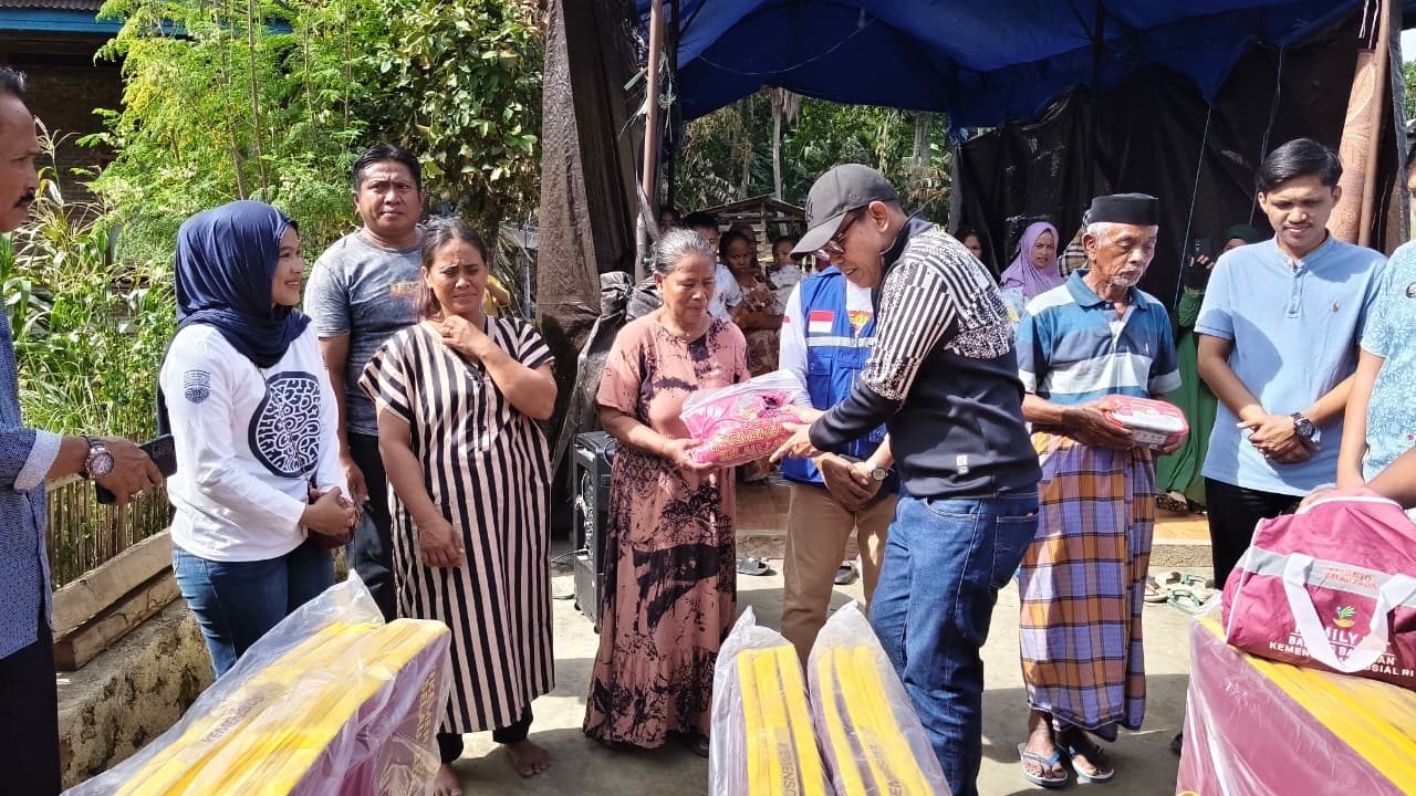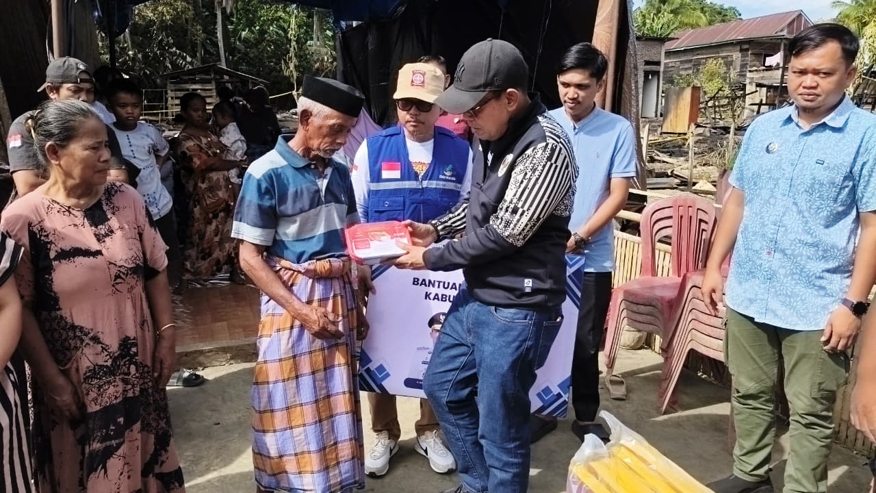 HumasBone – Wakil Bupati Bone, Dr. H. Andi Akmal Pasluddin, S.P., didampingi Camat Awangpone Andi Aidil Sammang, S.STP., M.Si., menyerahkan bantuan kepada warga korban kebakaran di Desa Carebbu, Kecamatan Awangpone, Kabupaten Bone, Jumat, 16 Januari 2025.