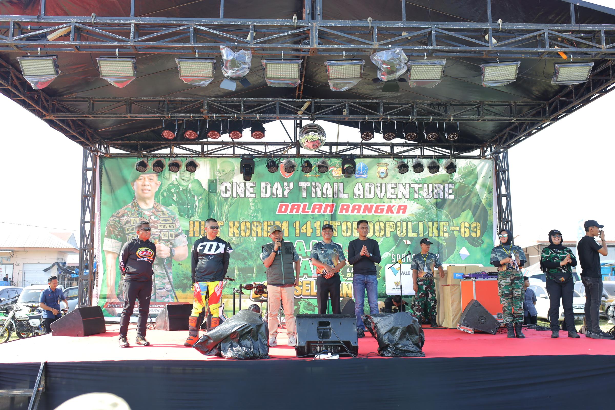 HumasBone – Bupati Bone H. Andi Asman Sulaiman, S.Sos., M.M., didampingi Komandan Korem (Danrem) 141/Toddopuli Brigjen TNI Andre Clift Rumbayan, S.Sos., M.M., menghadiri sekaligus melepas peserta One Day Trail Adventure dalam rangka Hari Ulang Tahun (HUT) ke-63 Korem 141/Toddopuli.