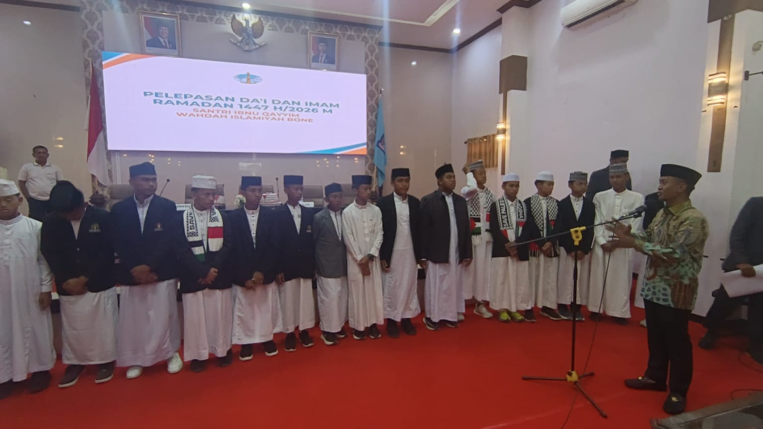 Pada kesempatan itu, Bupati Bone juga secara resmi melepas Dai dan Imam Ramadan 1447 H/2026 M dari Santri Ibnu Qayyim Wahdah Islamiyah Bone yang akan melaksanakan tugas dakwah dan pembinaan keagamaan di berbagai wilayah.