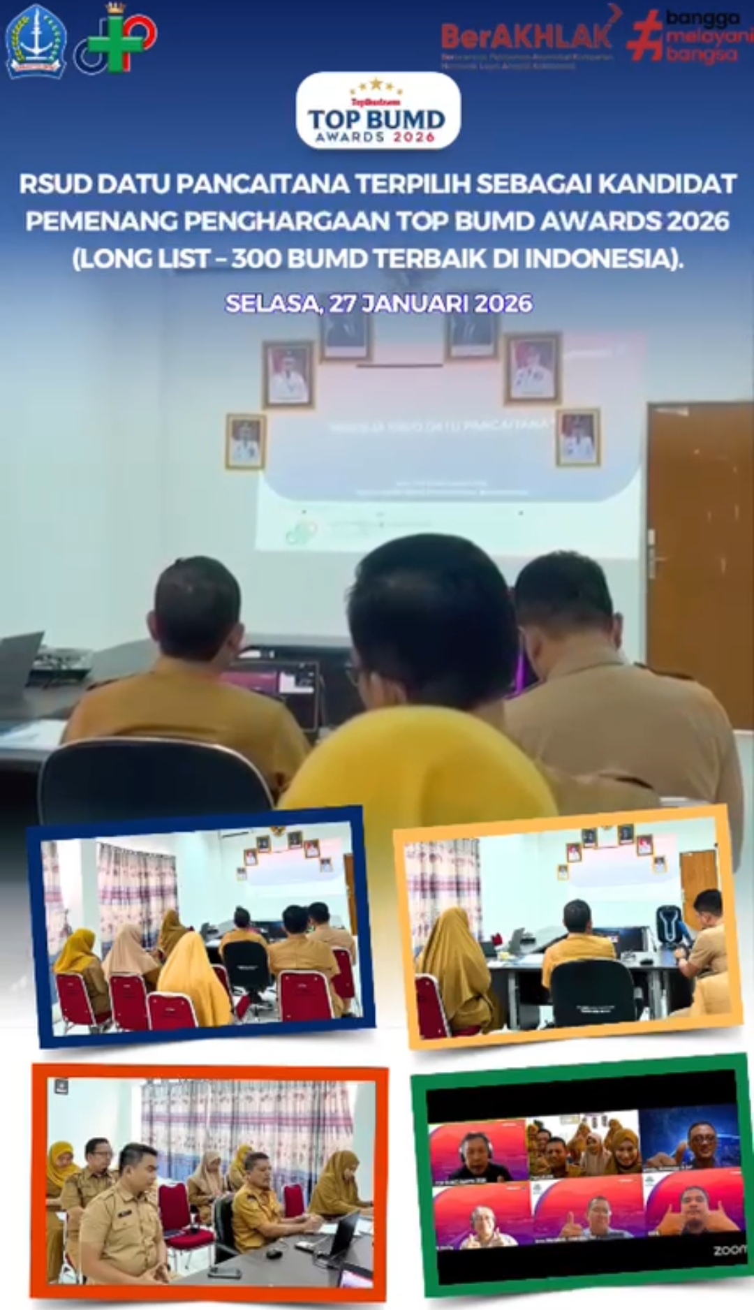 HumasBone – Komitmen Pemerintah Kabupaten Bone dalam menghadirkan layanan kesehatan modern dan mandiri kembali membuahkan prestasi membanggakan. Berdasarkan hasil sesi persentasi penjurian yang dilaksanakan secara virtual pada Selasa (27/1/2026), Bersama para juri TOP BUMD Awards UPT RSUD Datu Pancaitana resmi terpilih sebagai nominator dalam ajang bergengsi TOP BUMD Awards 2026.