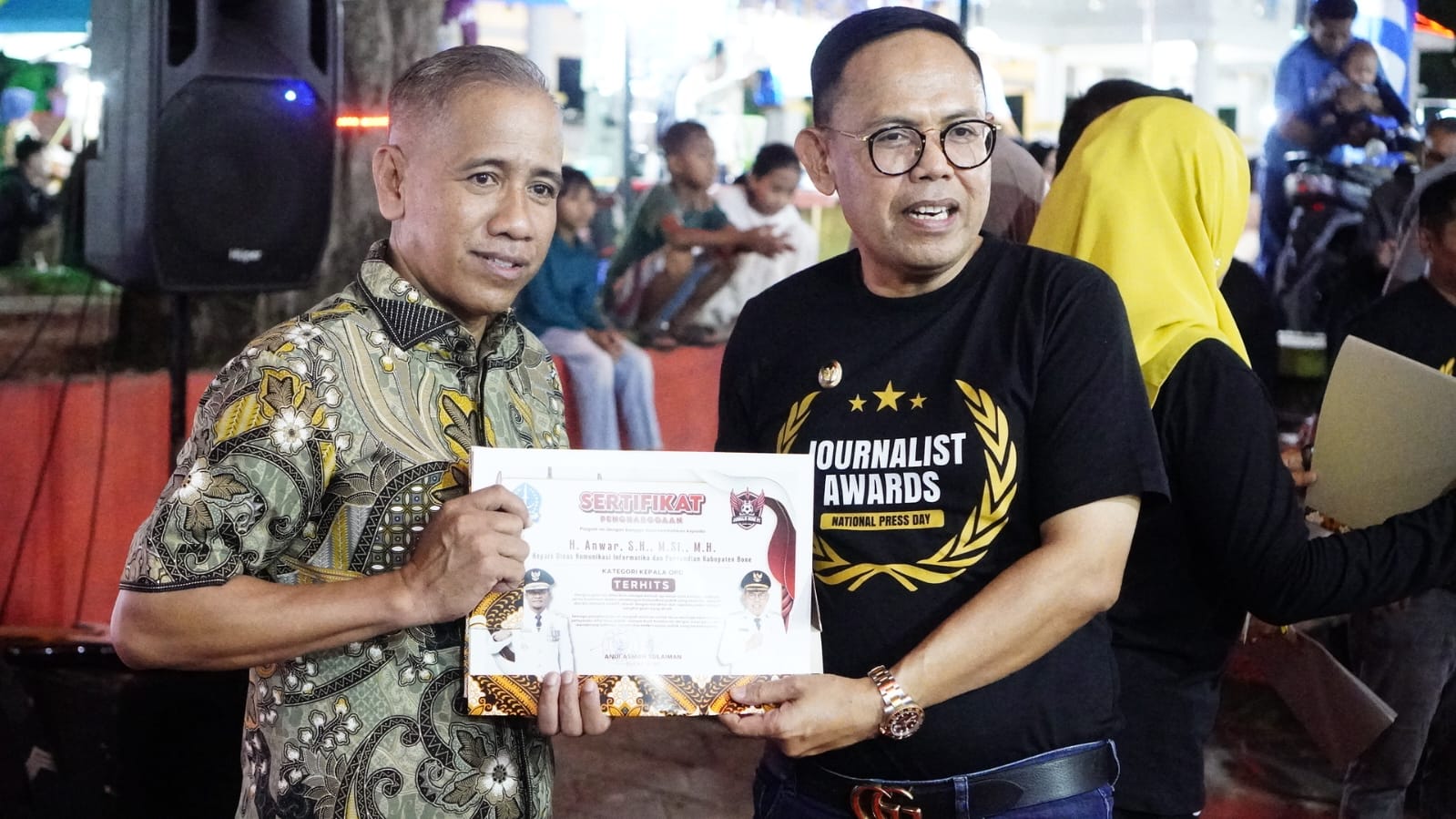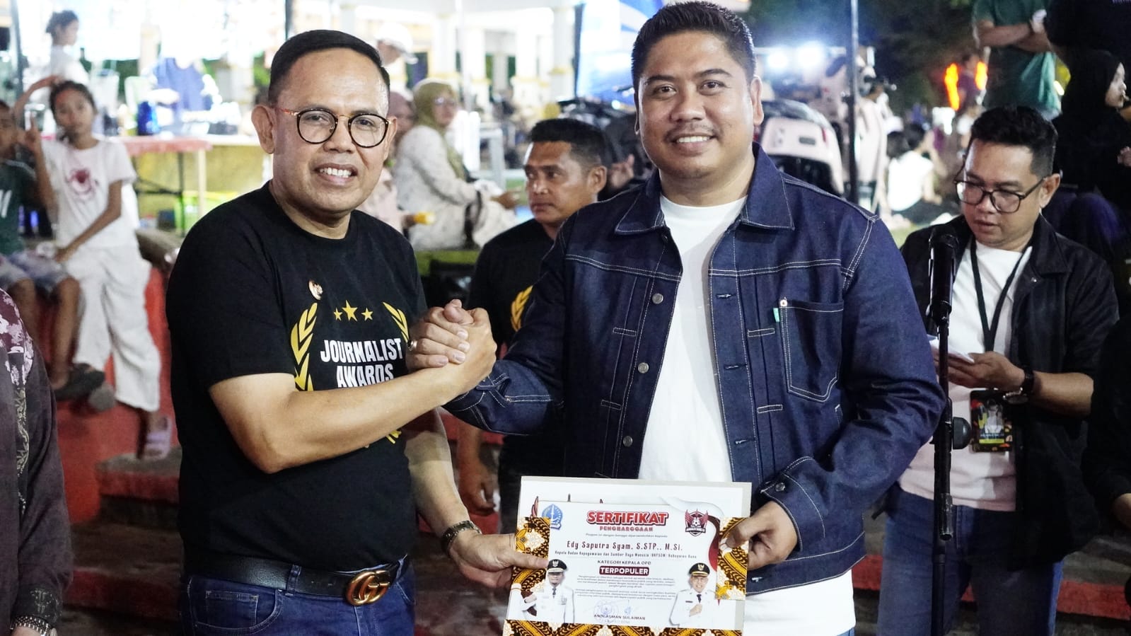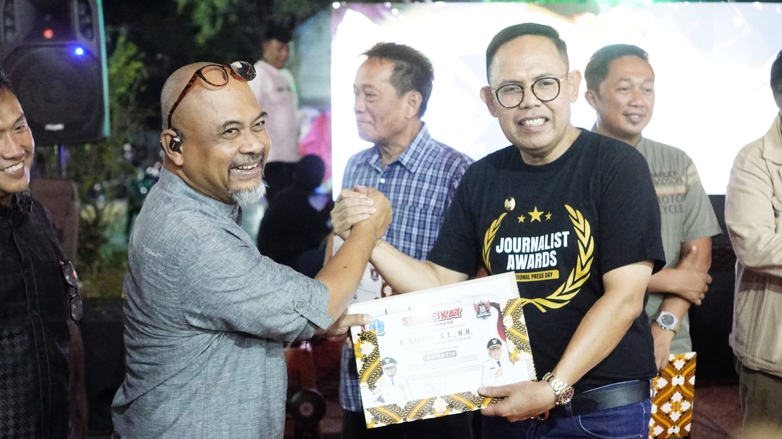 Selain itu, tampak pula para Camat, Kepala Bagian, Lurah, dan Kepala Desa yang ikut memeriahkan malam penghargaan tersebut. Suasana penuh keakraban dan kebersamaan mewarnai jalannya acara, mencerminkan sinergi yang kuat antara pemerintah daerah dan insan pers sebagai mitra strategis.