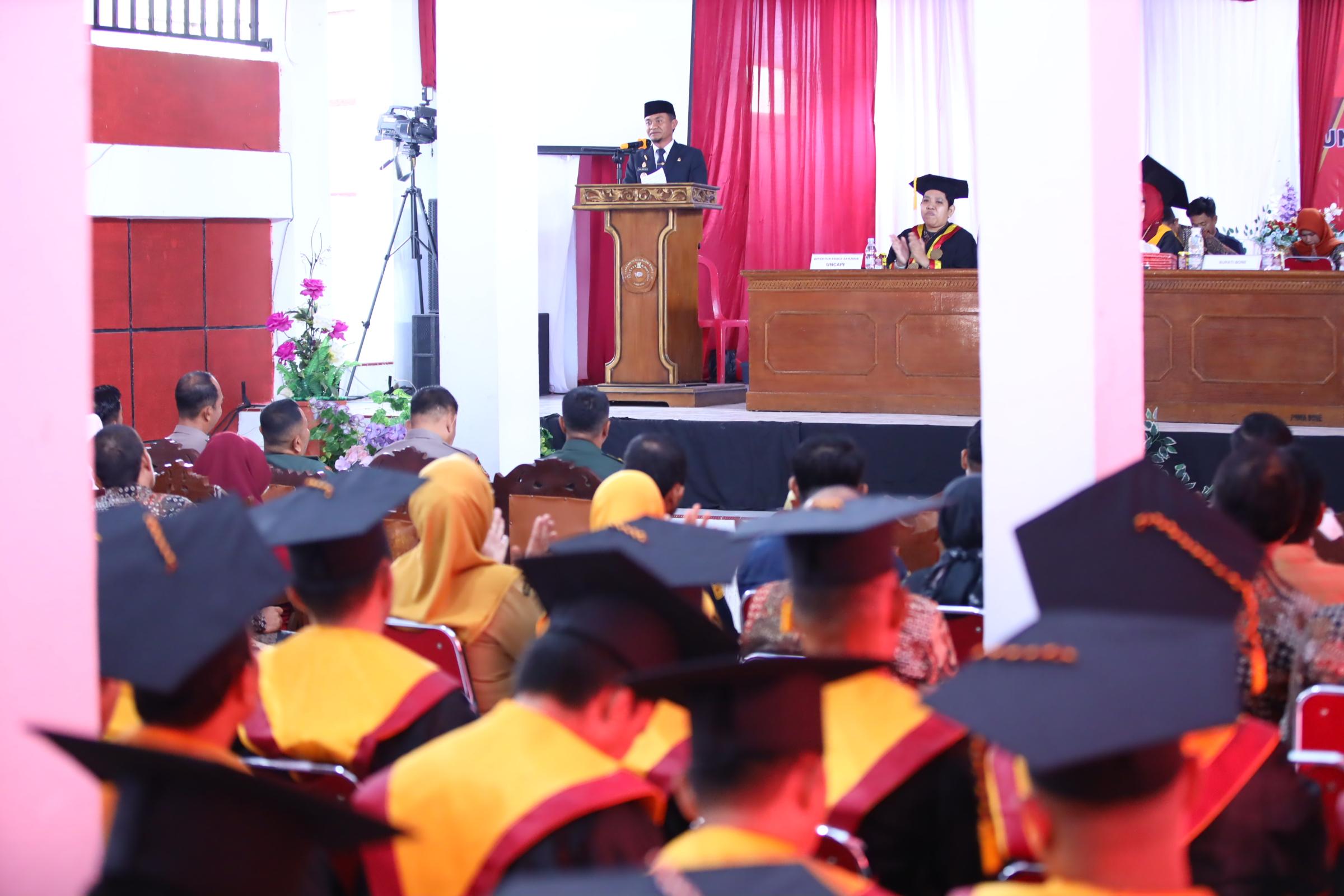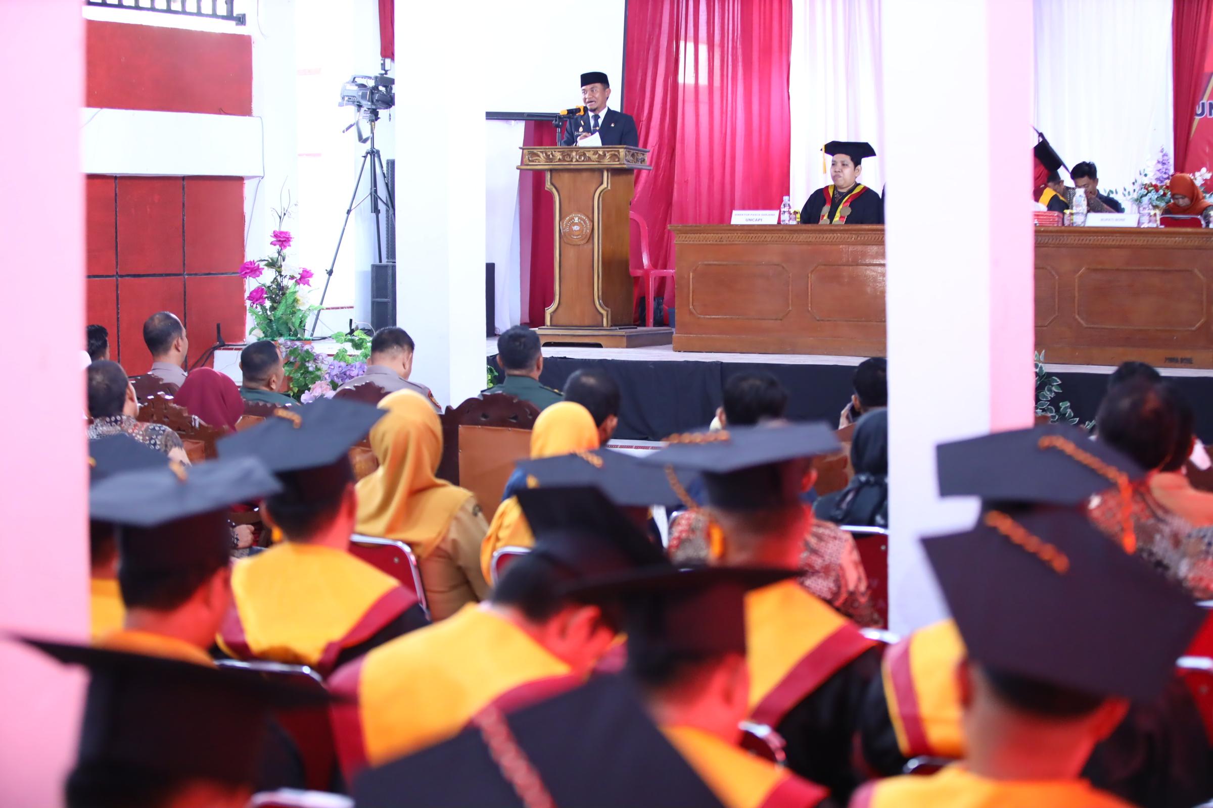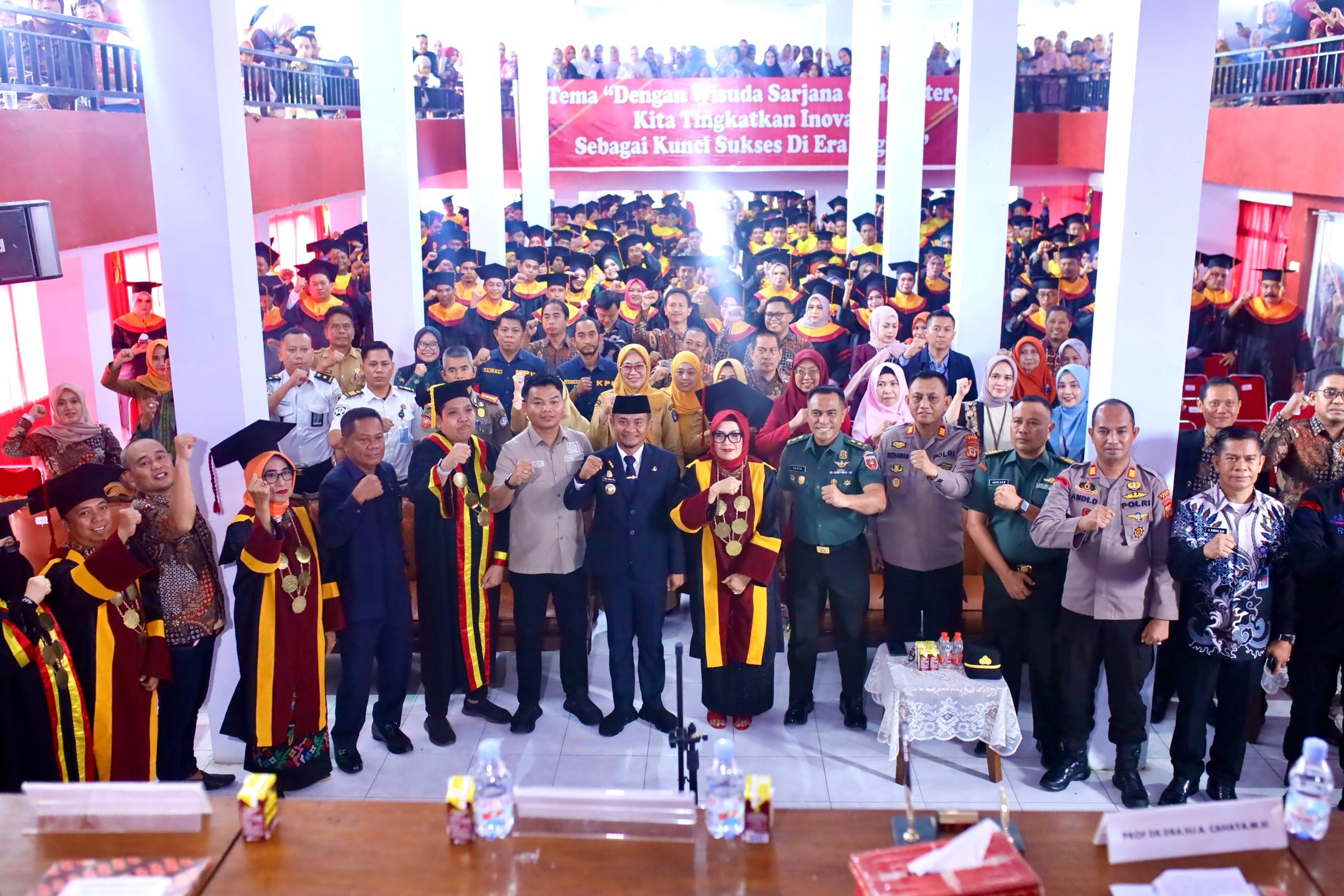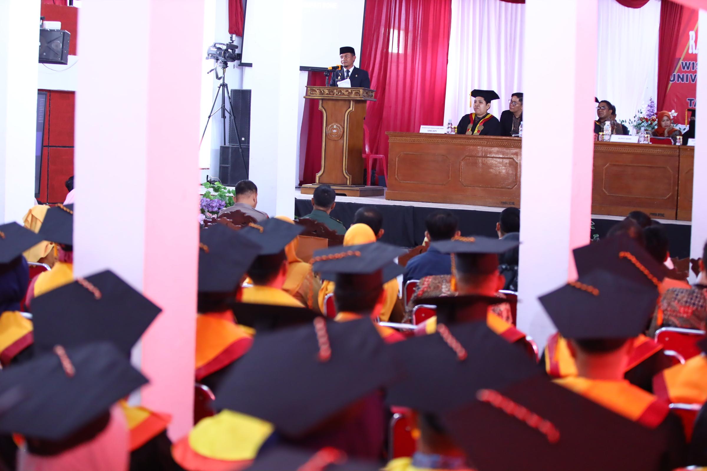 Wisuda yang berlangsung khidmat tersebut mengangkat tema “Dengan Wisuda Sarjana dan Magister Kita Tingkatkan Inovasi sebagai Kunci Sukses di Era Digital”. Tema ini menegaskan pentingnya peran lulusan perguruan tinggi dalam menghadirkan inovasi, kreativitas, dan daya saing di tengah perkembangan teknologi dan transformasi digital yang semakin pesat.