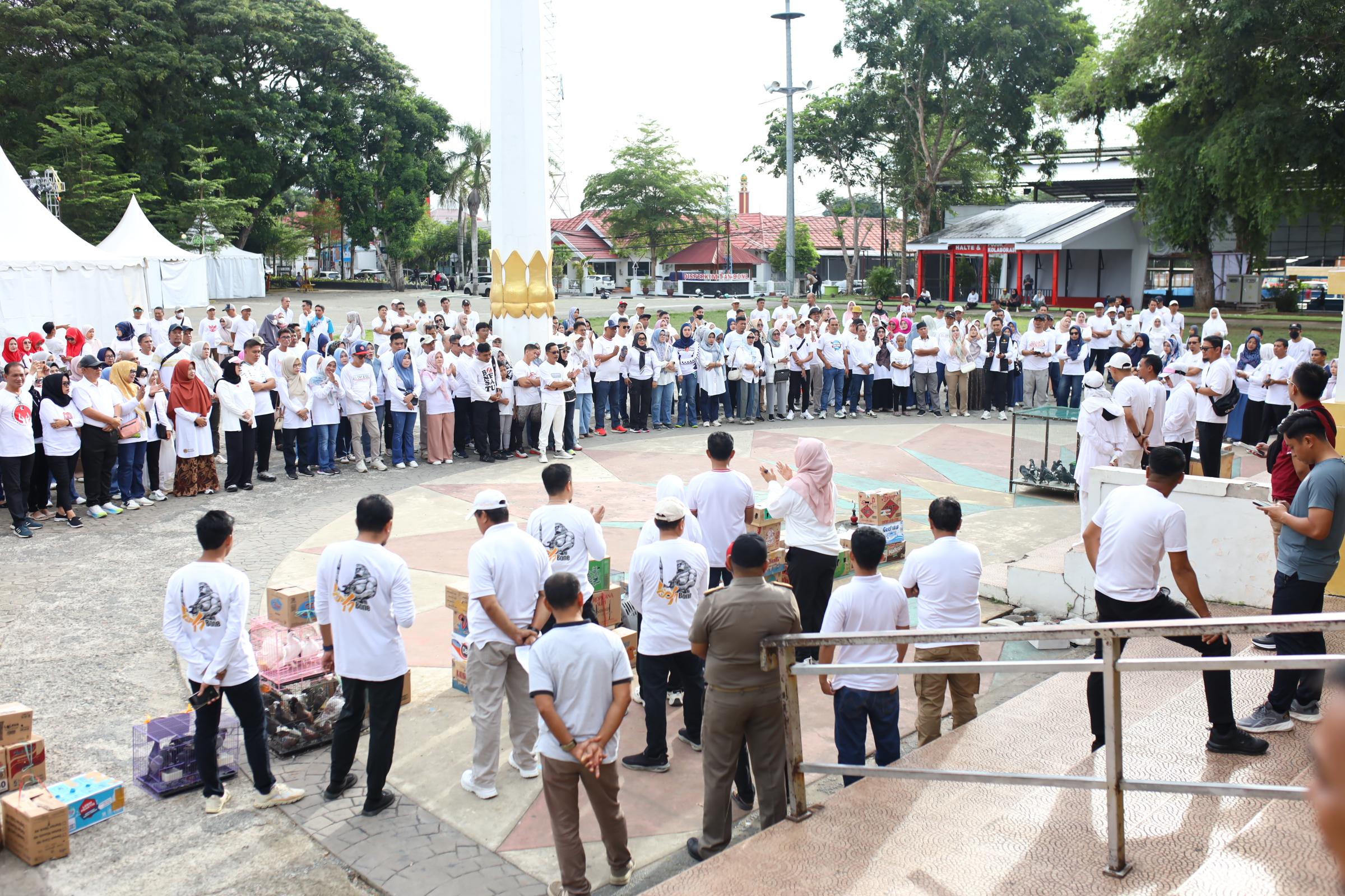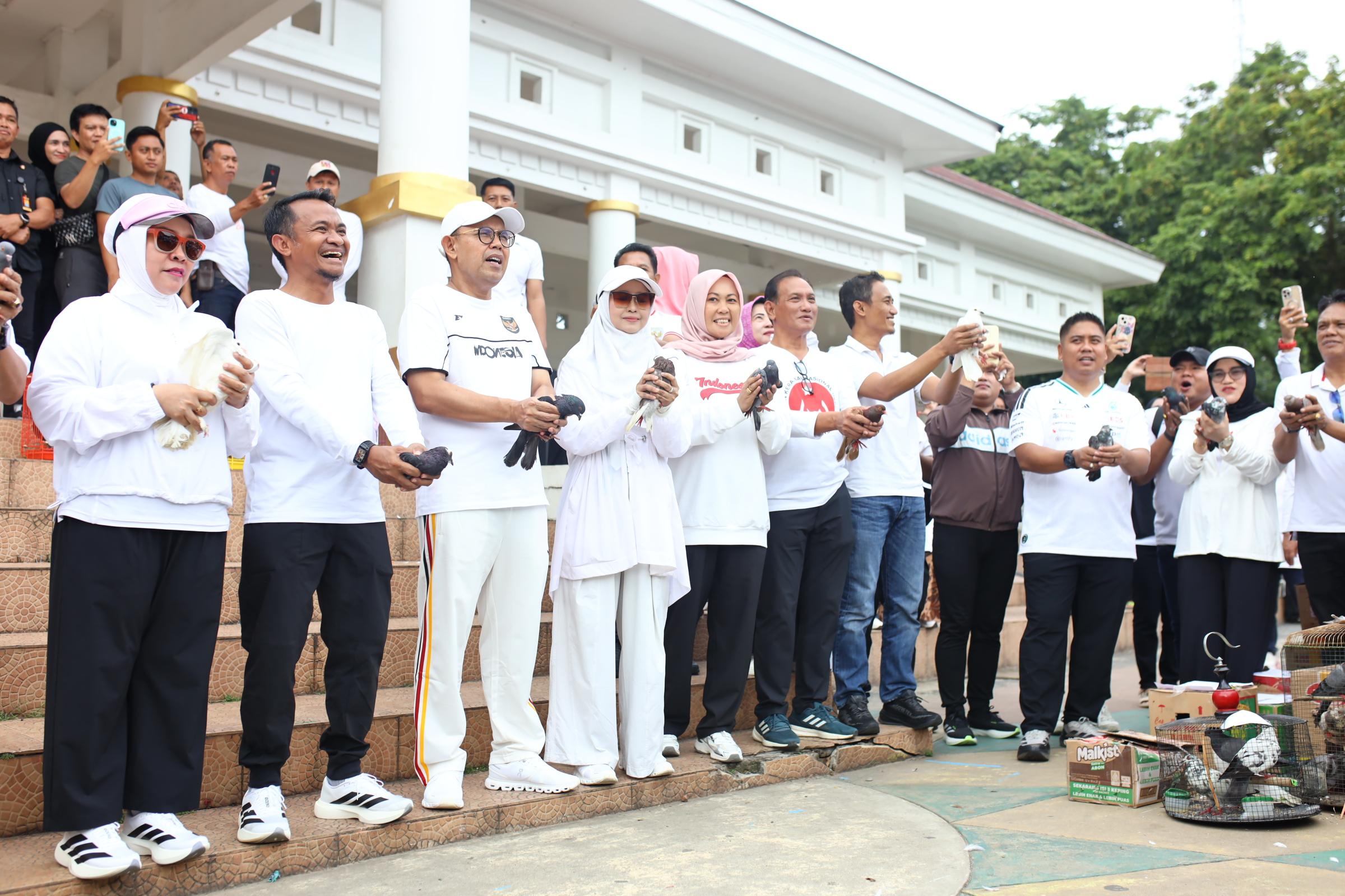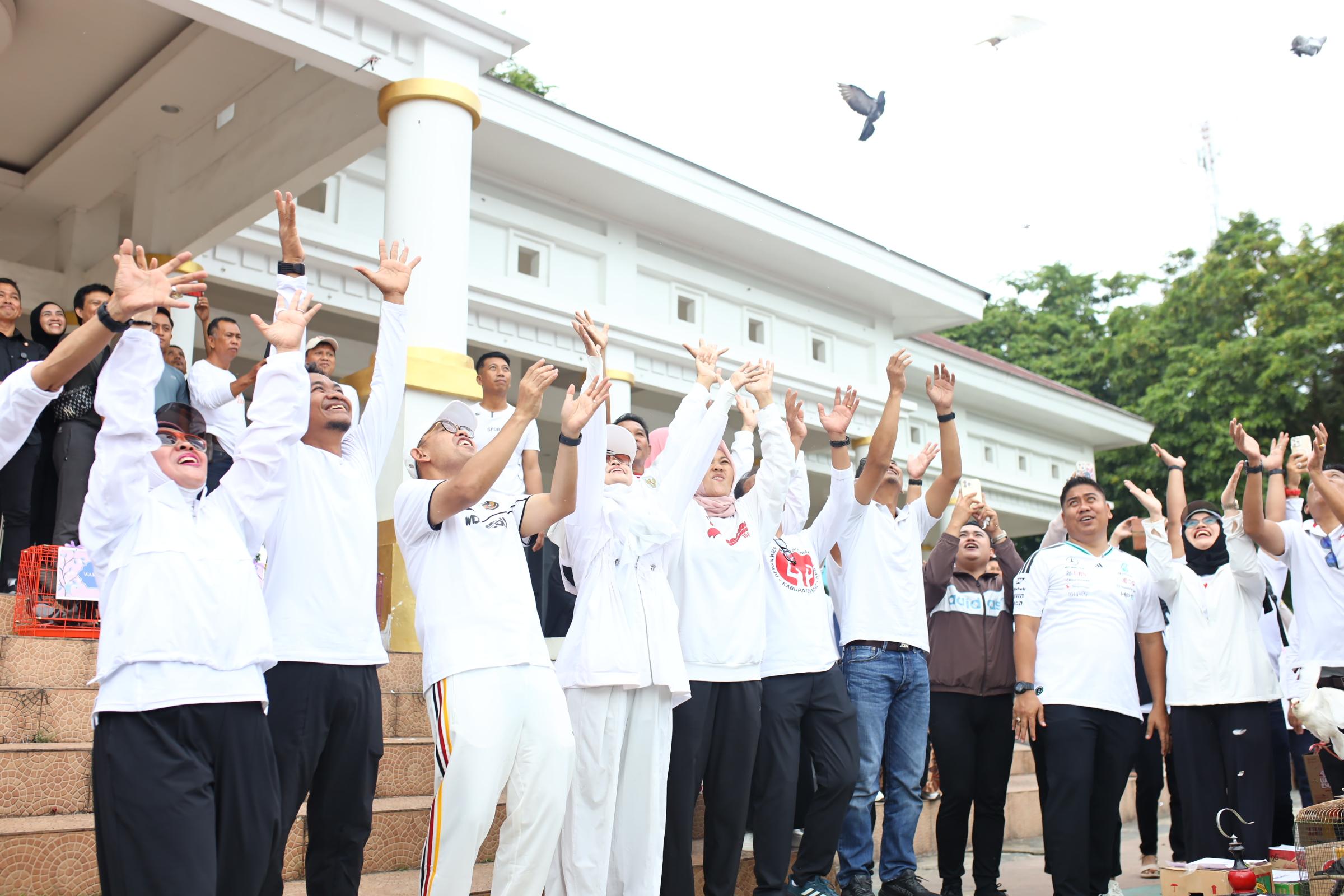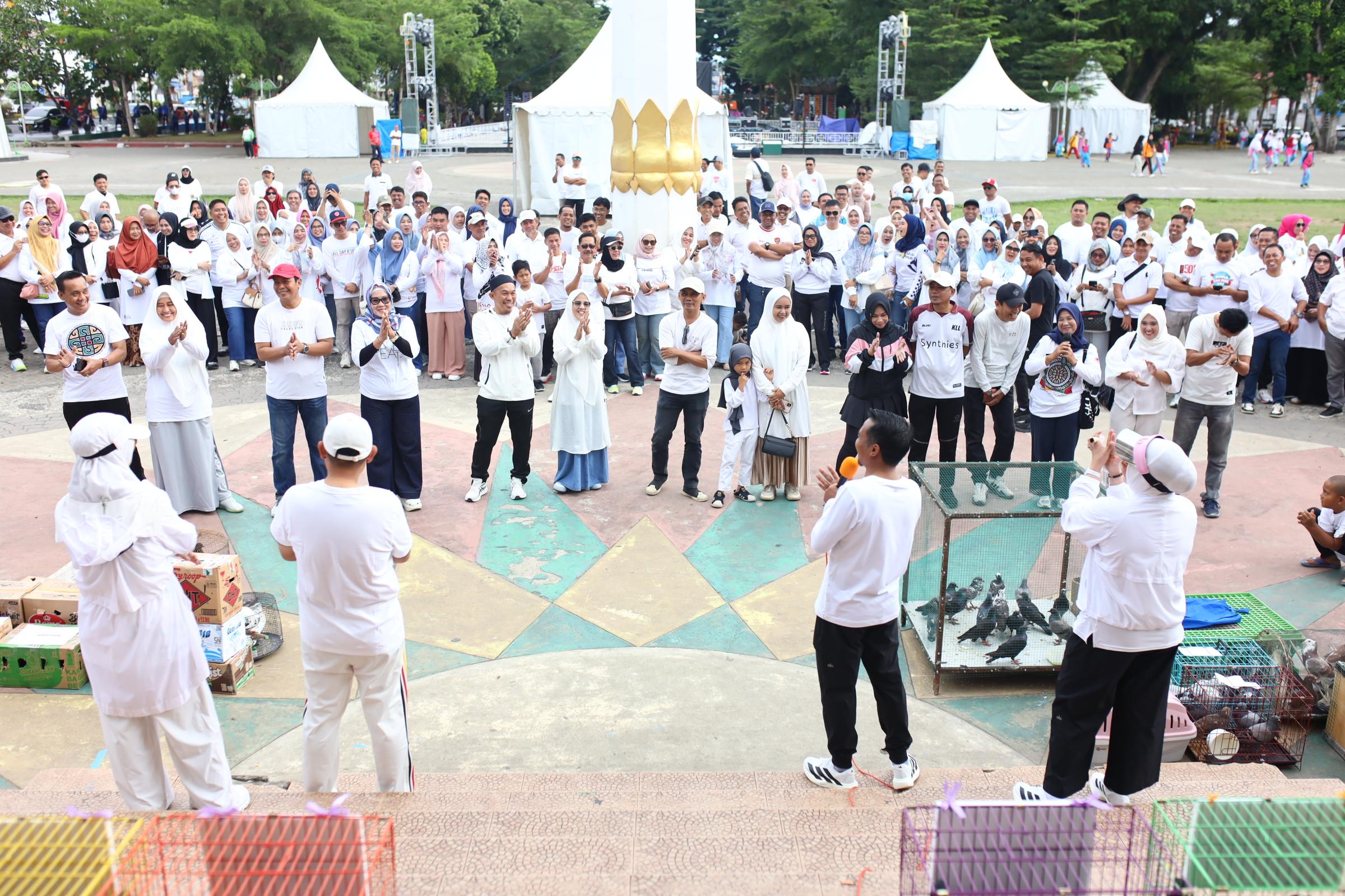 Kegiatan tersebut turut dihadiri para Kepala OPD, camat, kepala bagian, serta ASN lingkup Pemerintah Kabupaten Bone. Masyarakat yang tengah berolahraga pagi di kawasan Lapangan Merdeka juga antusias menyaksikan momen pelepasan burung merpati yang berlangsung penuh kebersamaan.