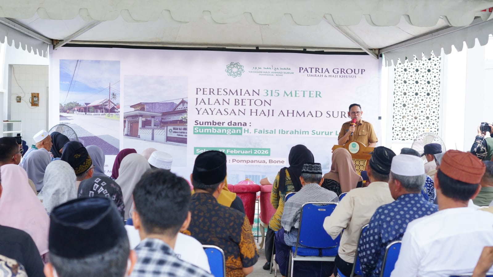 HumasBone – Wakil Bupati Bone Andi Akmal Pasluddin, S.P., M.M., meresmikan pembangunan Jalan Beton Yayasan H. Ahmad Surur sepanjang 315 meter yang berlokasi di Kelurahan Pompanua, Kecamatan Ajangale, Kabupaten Bone, Selasa (17/2/2026). Peresmian tersebut menjadi momentum penting dalam mendukung peningkatan infrastruktur dan aksesibilitas masyarakat di wilayah tersebut.