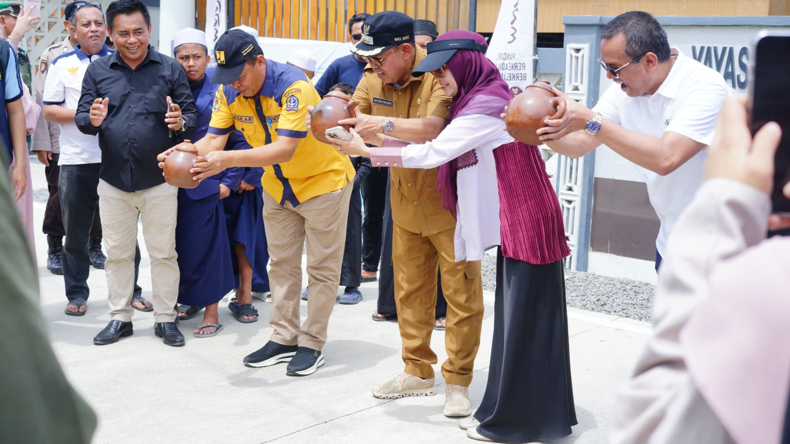 Prosesi peresmian ditandai dengan pemecahan tiga buah kendi sebagai simbol rasa syukur dan harapan agar jalan yang telah dibangun dapat memberikan manfaat besar bagi masyarakat sekitar. Dalam sambutannya, Wakil Bupati menyampaikan apresiasi atas kontribusi yayasan dan seluruh pihak yang telah berpartisipasi dalam pembangunan jalan tersebut.