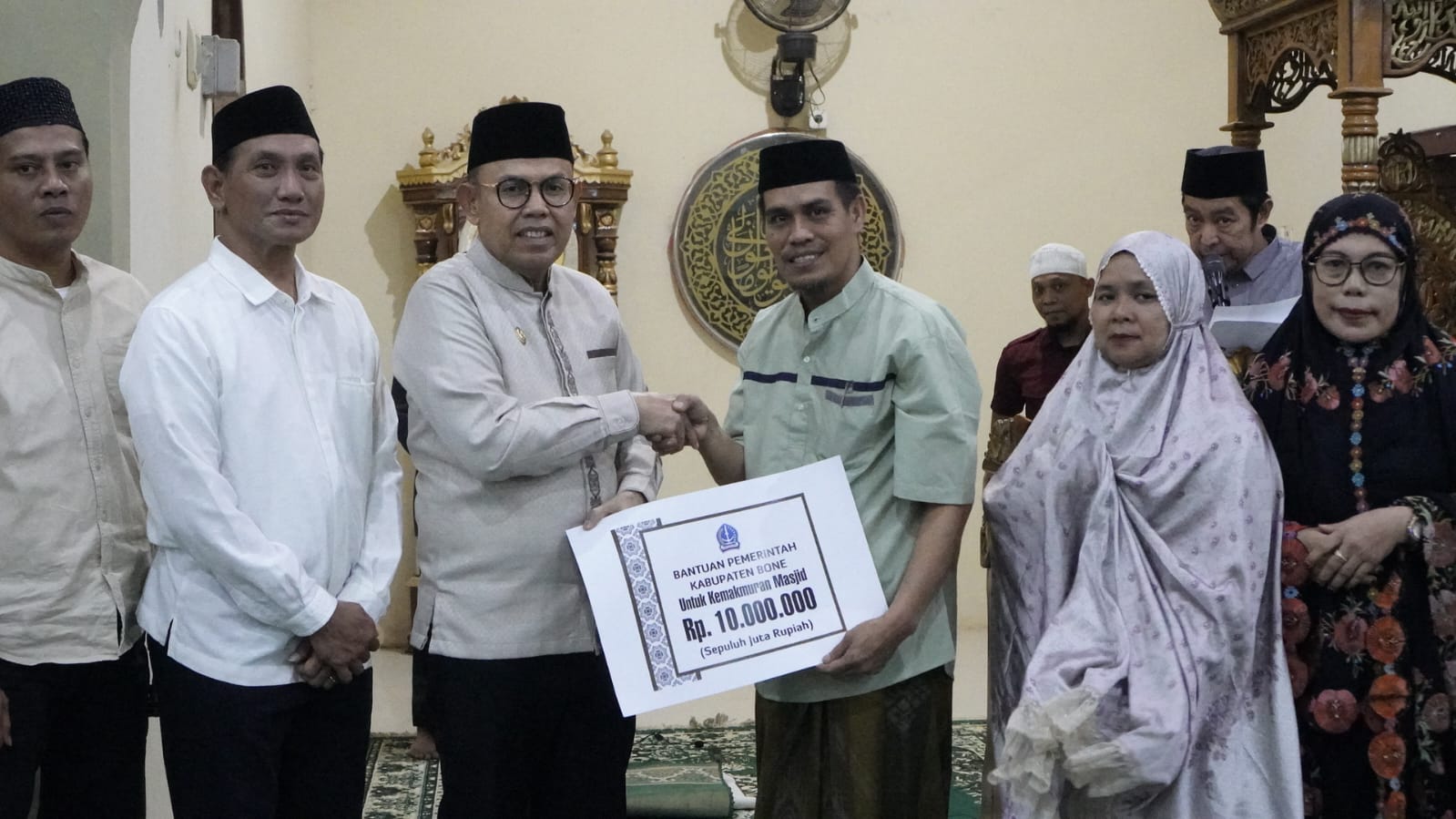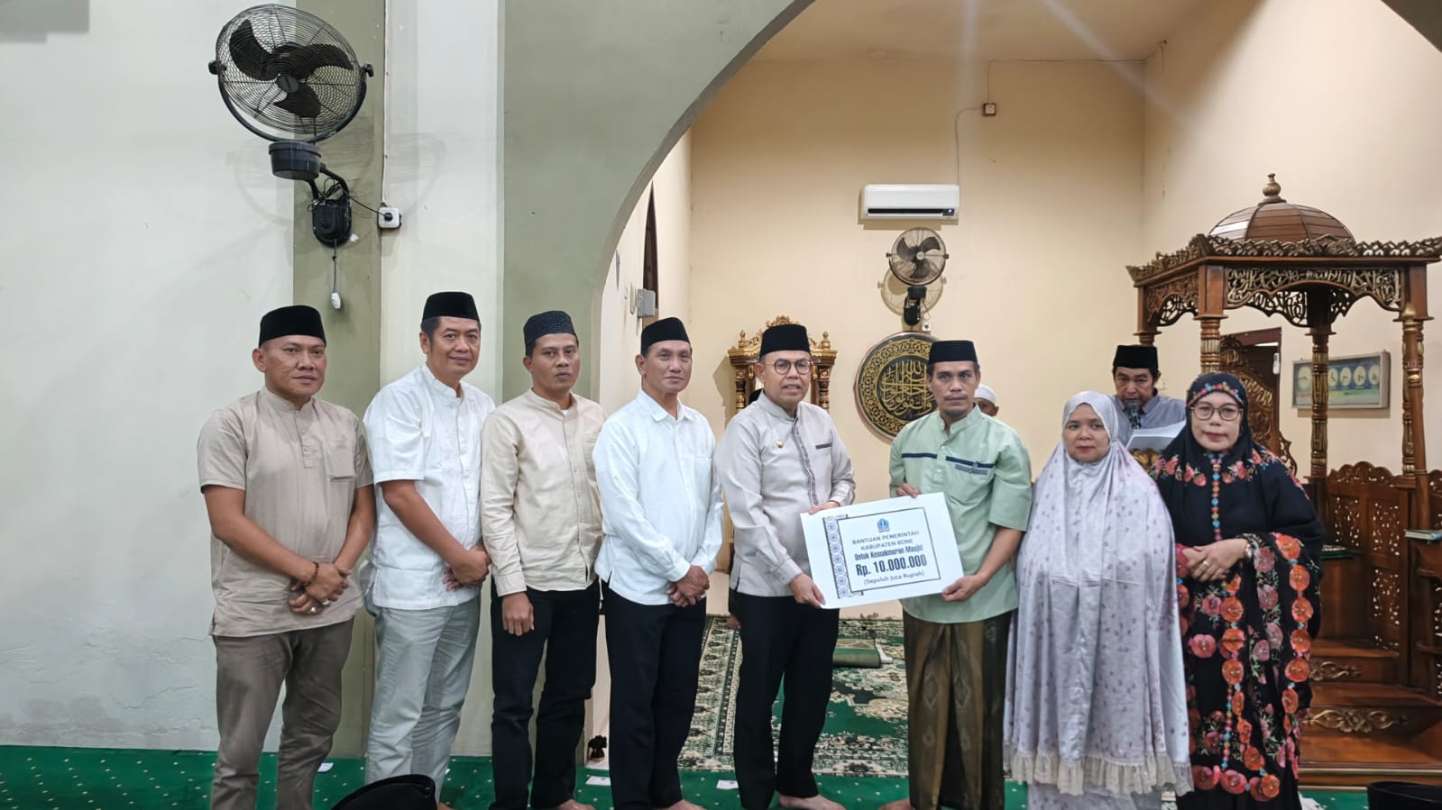 Dalam kunjungan tersebut, Wakil Bupati didampingi oleh Wakil Ketua TP PKK Kabupaten Bone, Hj. Maya Damayanti A. Akmal. Kehadiran rombongan disambut dengan antusias oleh para tokoh masyarakat dan jamaah setempat. Sebagai bentuk dukungan nyata terhadap sarana ibadah, Wakil Bupati Bone secara simbolis menyalurkan bantuan dana sebesar Rp10.000.000 yang diperuntukkan bagi kemakmuran dan pemeliharaan Masjid Nurul Huda.