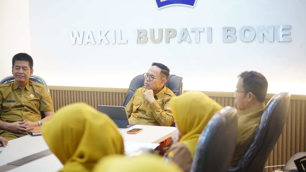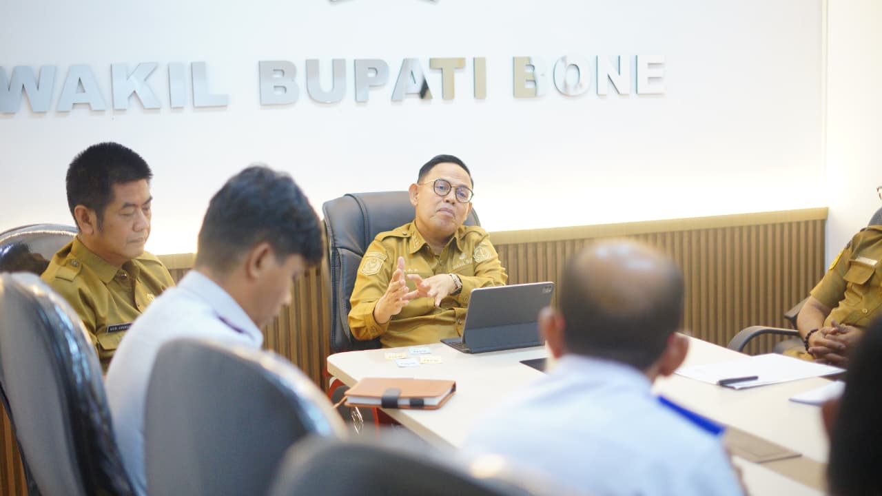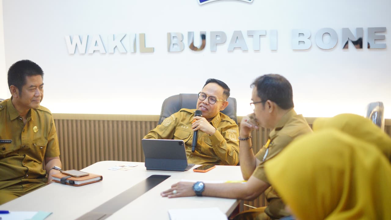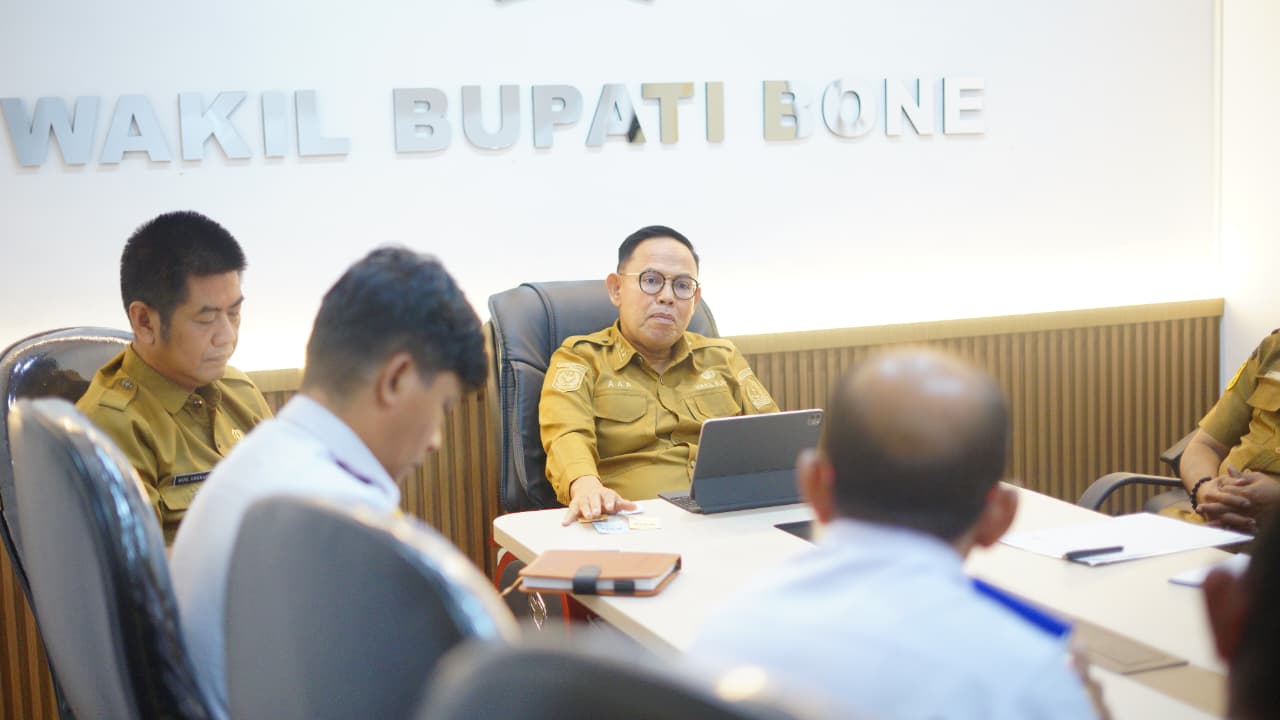 HumasBone – Wakil Bupati Bone, Dr. H. Andi Akmal Pasluddin, S.P., M.M., didampingi Pj. Sekretaris Daerah Bone, Hj. Andi Tenriawaru, S.P., M.Si., memimpin Rapat Evaluasi Peningkatan Pendapatan Asli Daerah (PAD) Tahun 2026 yang digelar di Ruang Rapat Wakil Bupati Bone, Selasa, 24 Februari 2026.