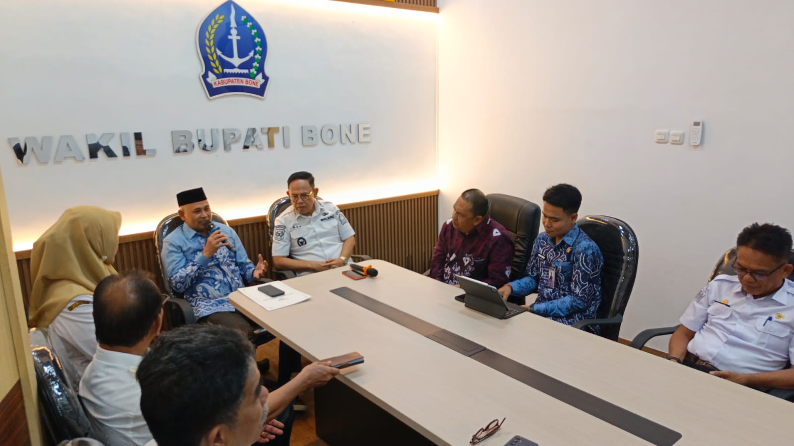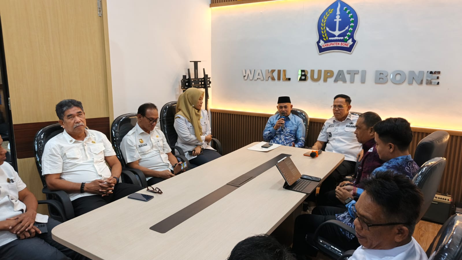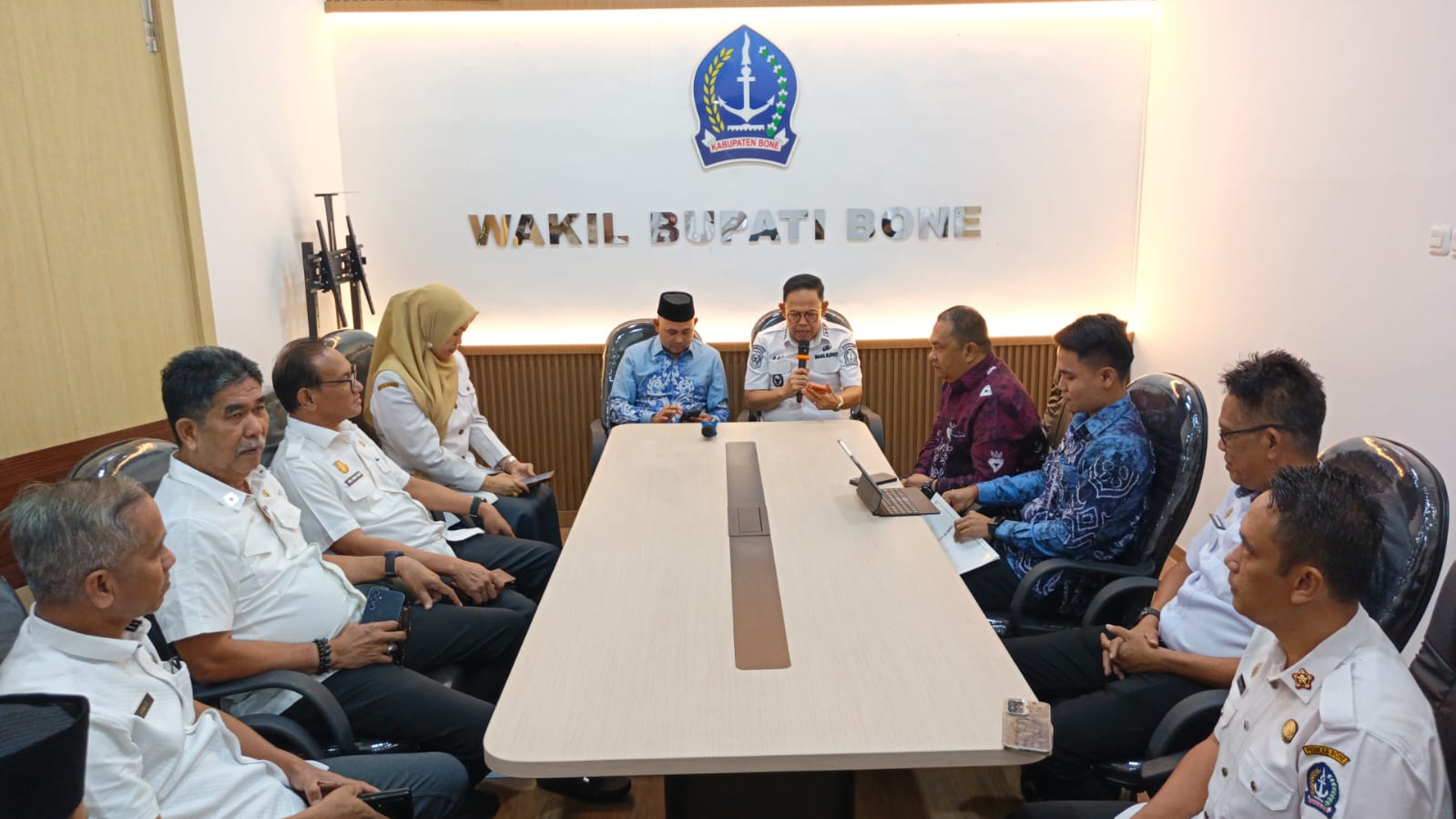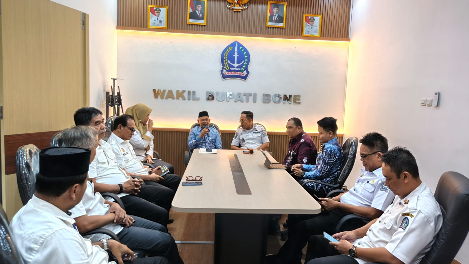 Turut hadir dalam pertemuan tersebut Pj. Sekretaris Daerah Kabupaten Bone serta sejumlah Kepala Perangkat Daerah lingkup Pemerintah Kabupaten Bone.