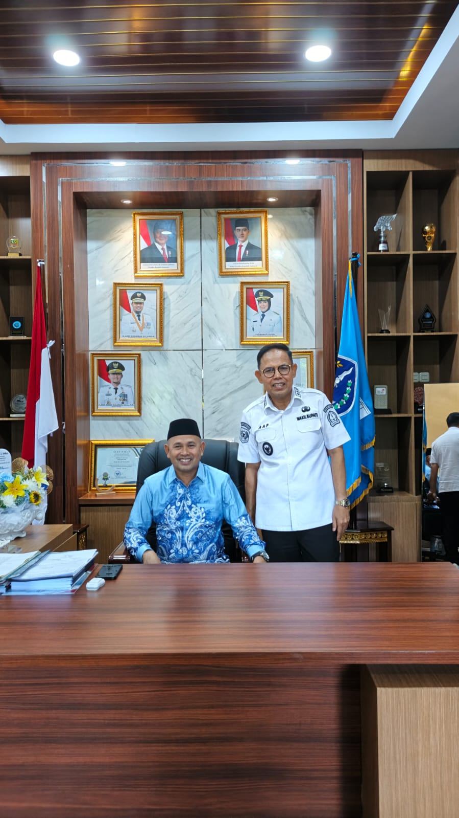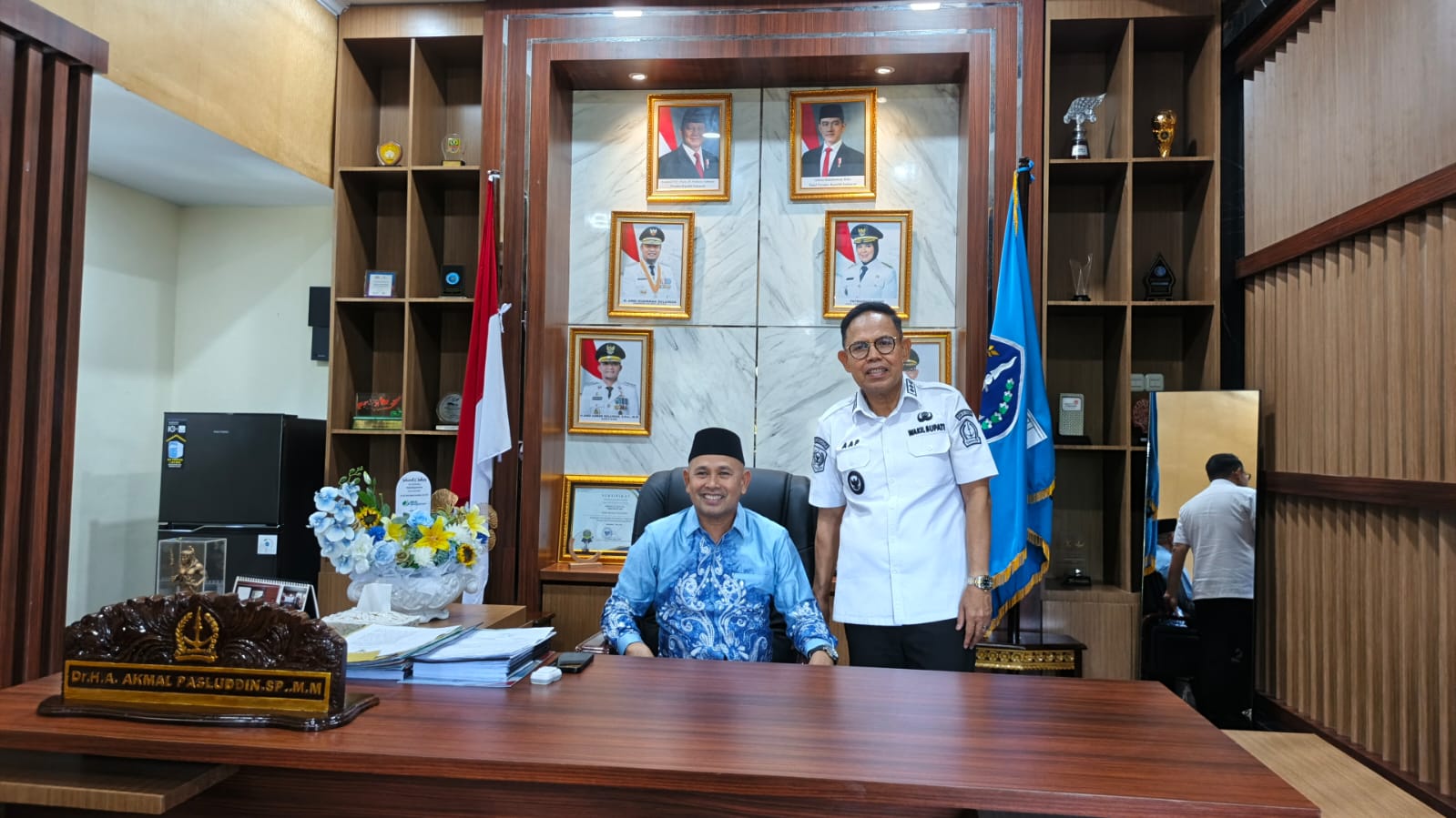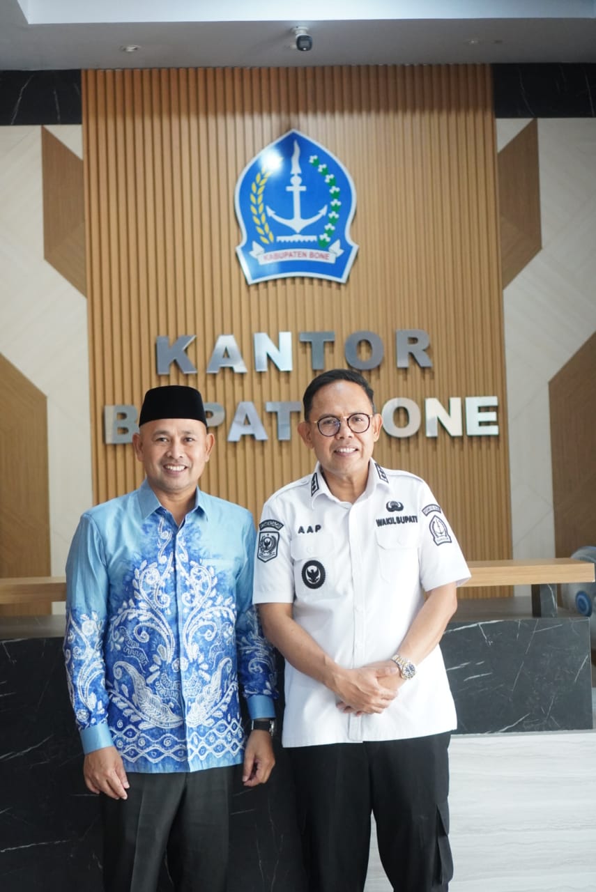 HumasBone – Wakil Bupati Bone, Dr. H. Andi Akmal Pasluddin, S.P., M.M., menerima kunjungan Wakil Bupati Tanah Bumbu, H. Bahsanuddin, di ruang kerjanya, Kantor Bupati Bone, Rabu (4/3/2026).