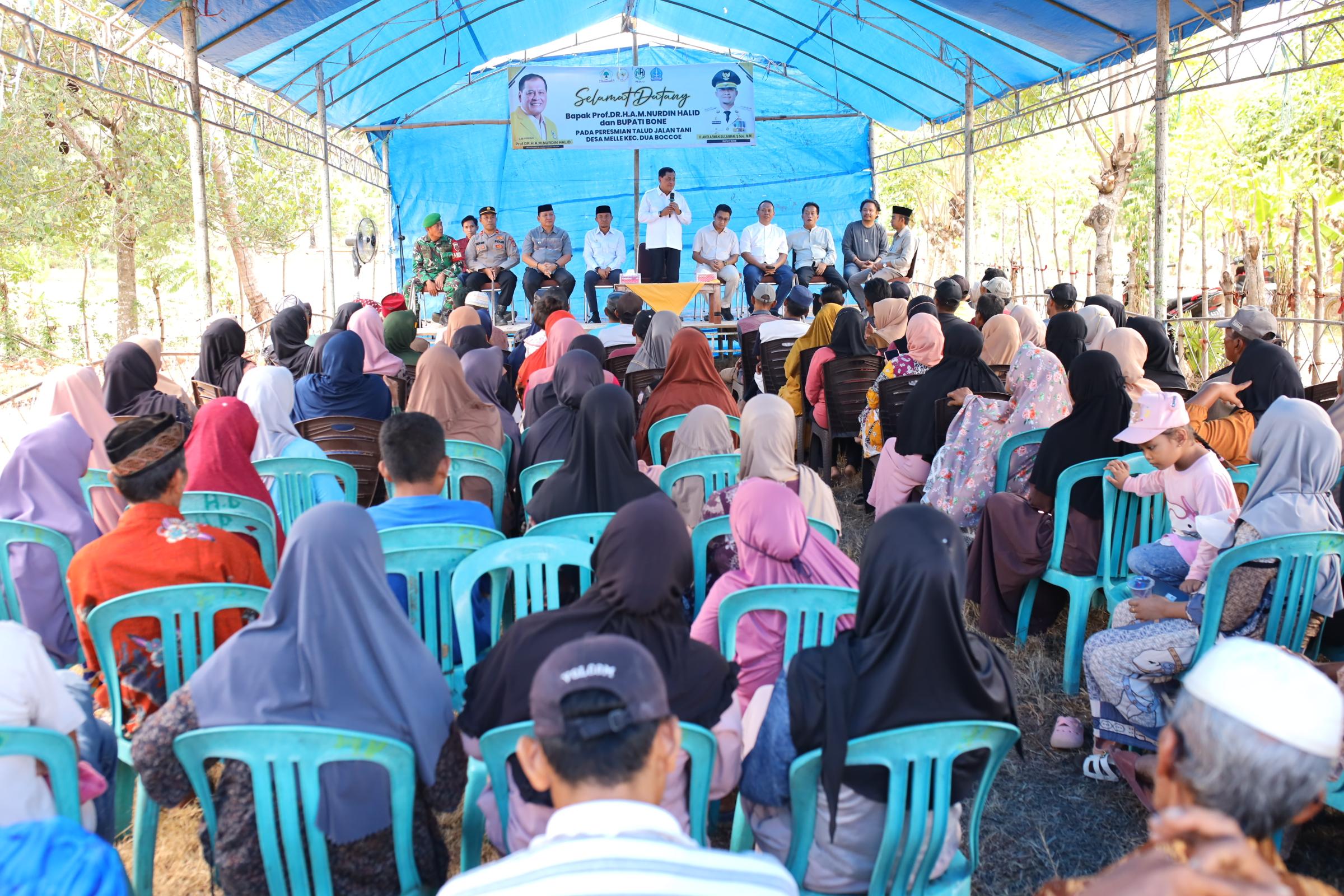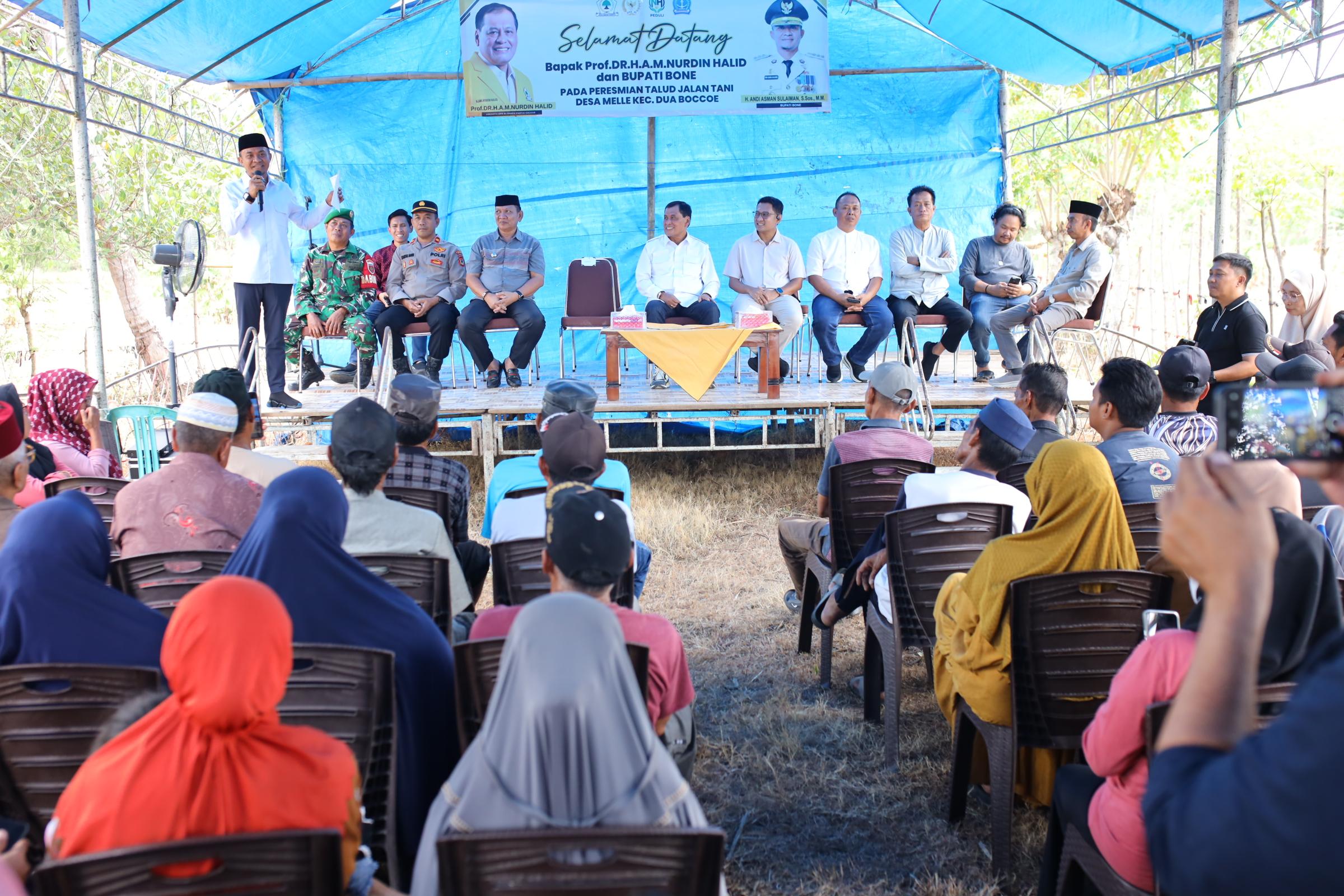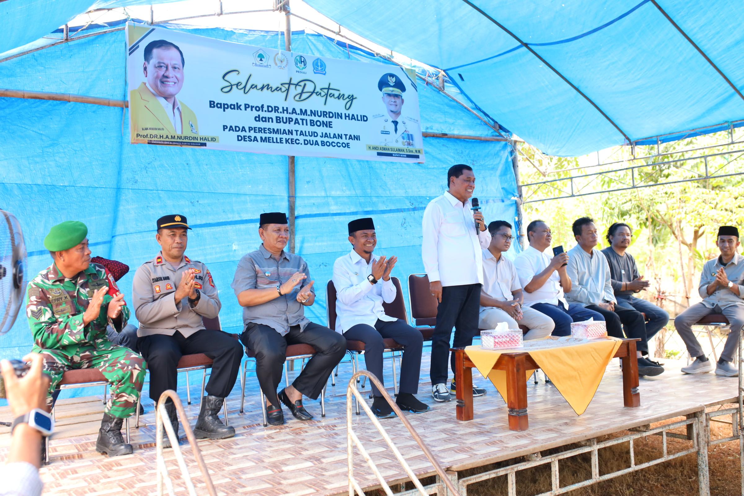 Bupati Bone Dampingi Nurdin Halid Resmikan Talud Jalan Tani di Dua Boccoe