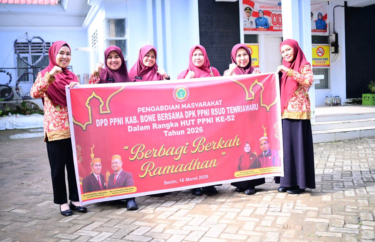 HumasBone – Pemerintah Kabupaten Bone melalui Plt Kepala Dinas Kesehatan Kabupaten Bone H. Mattotorang, SKM., M.Tr.Adm.Kes., M.Si. mengapresiasi kegiatan berbagi berkah Ramadan yang dilaksanakan oleh Dewan Pengurus Komisariat (DPK) Persatuan Perawat Nasional Indonesia (PPNI) Kabupaten Bone bersama DPK PPNI RSUD Tenriawaru dalam rangka memperingati Hari Ulang Tahun (HUT) PPNI ke-52 pada Senin, 16 Maret 2026.